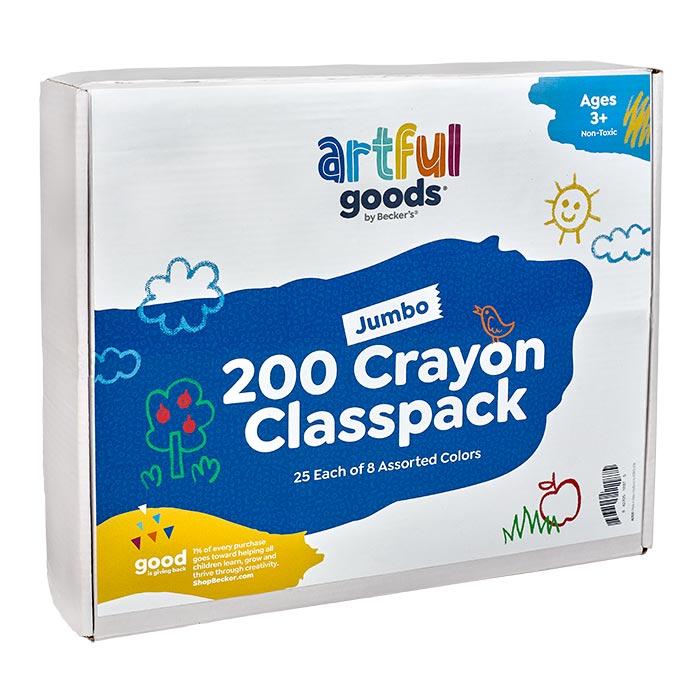 Artful Goods® is the brand you can count on! This set includes the eight most popular colors and will bring hours of drawing enjoyment to your students. These Jumbo Crayons are the perfect crayons for your preschool classroom and suit the most discerning young artists! The classpack is packaged for easy use and convenient classroom storage.