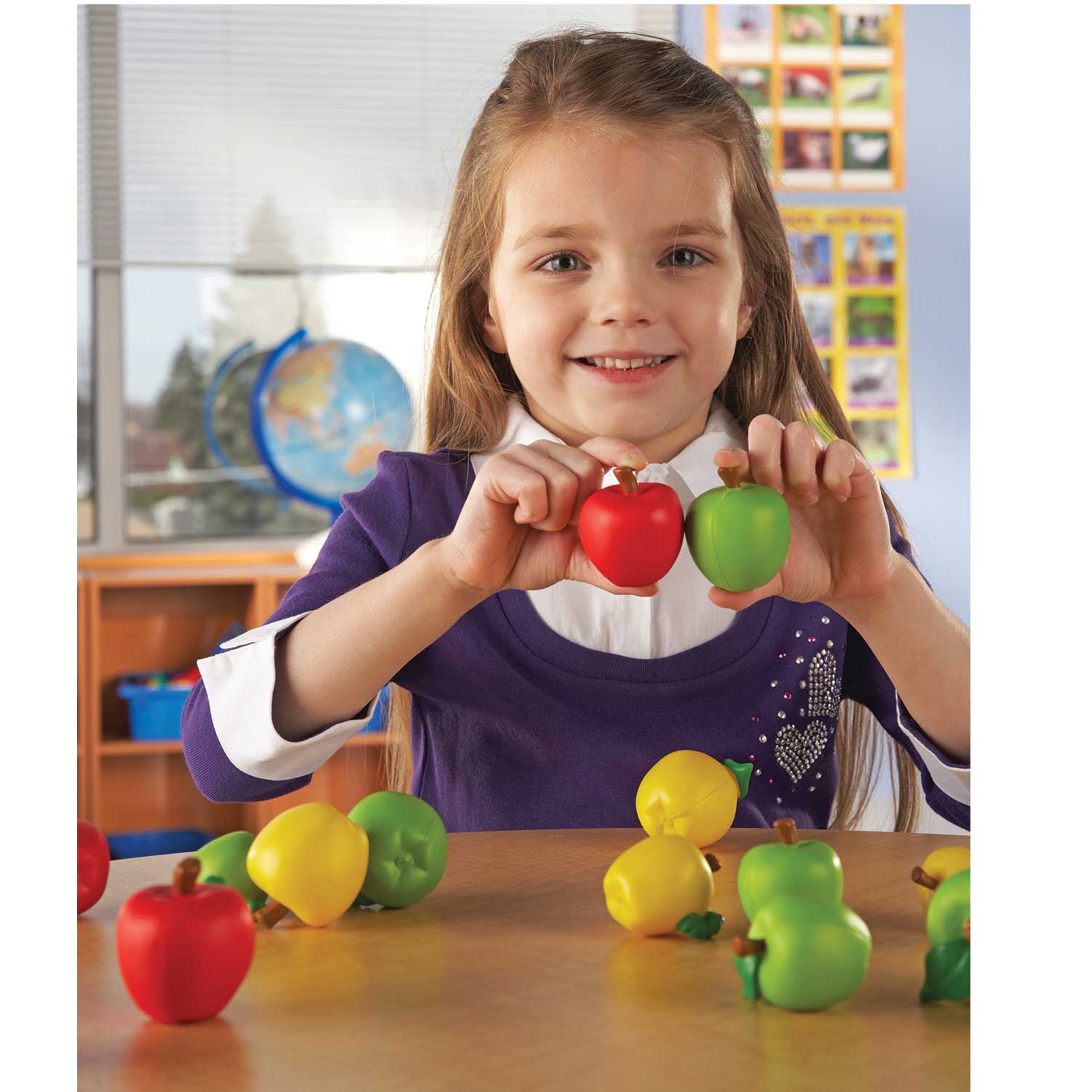 Compare apples to apples with this unique set! Sort and classify apples by five attributes including size, color and physical features (stem, leaf, worm).