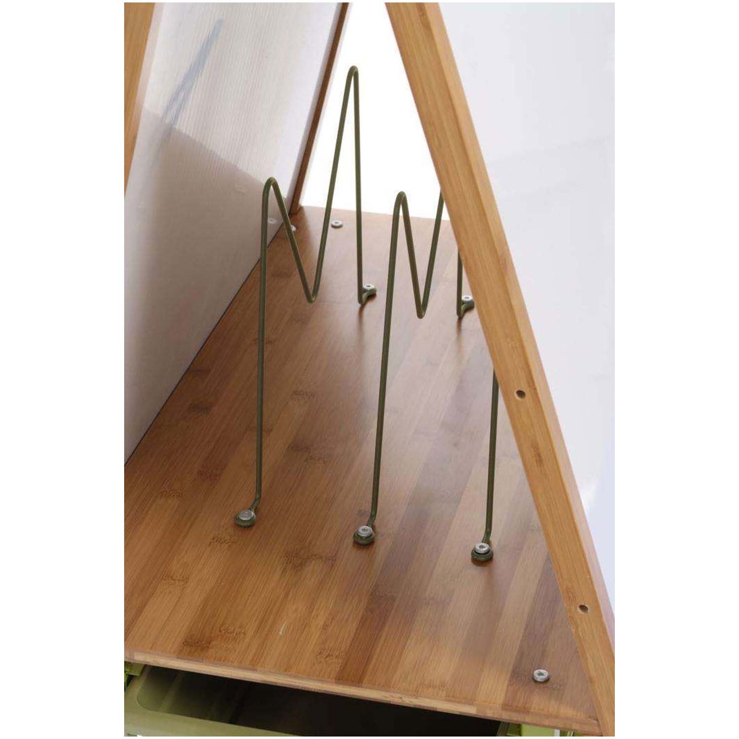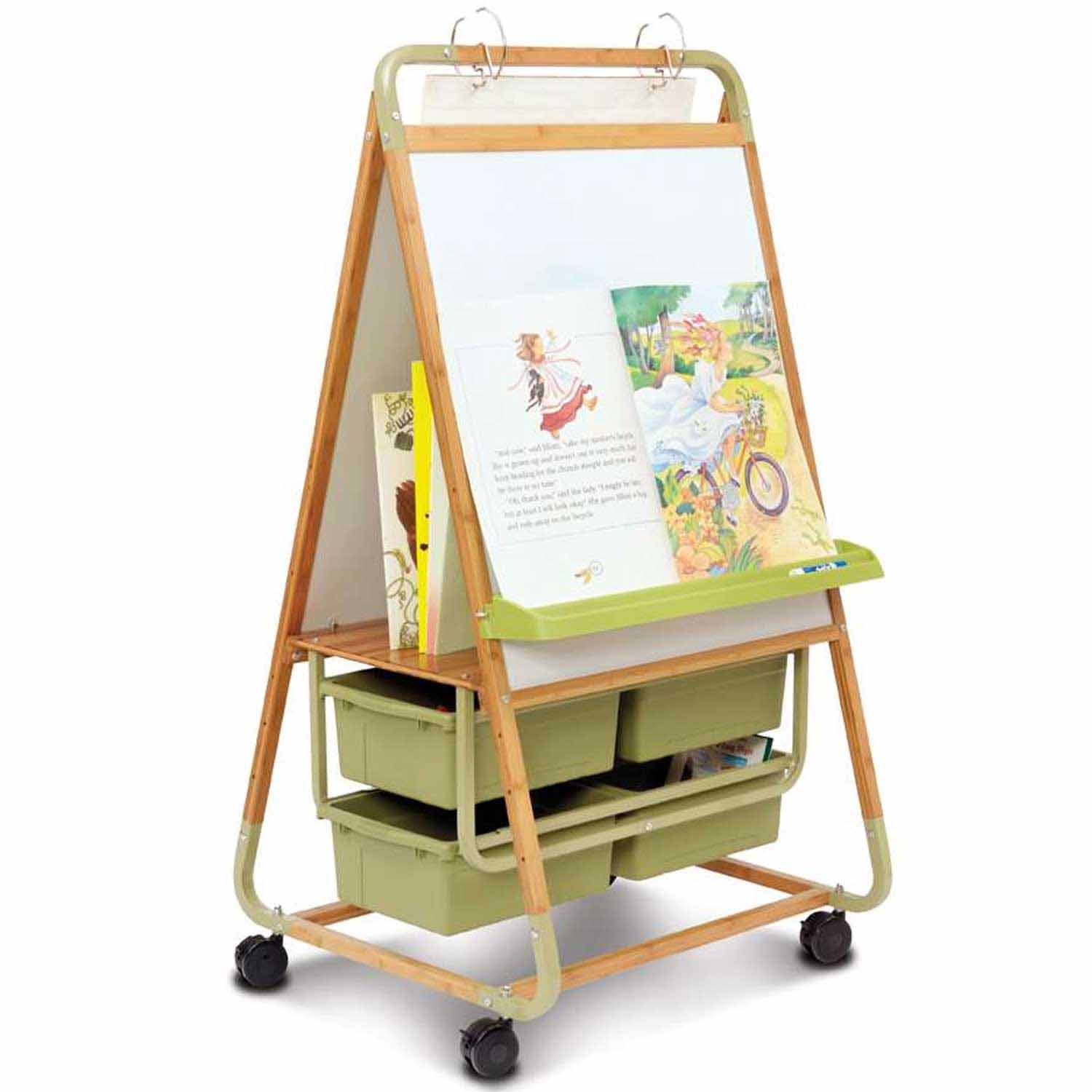 This eco-friendly Bamboo Double-Sided Teaching Easel was designed to bring natural elements into the classroom and is ideal for neutral or early years environments. The two magnetic dry-erase boards are perfect for multiple classroom activities. Features include four large open tubs, 3" locking casters, big book racks, roll-up felt, and snap-on chart hooks.