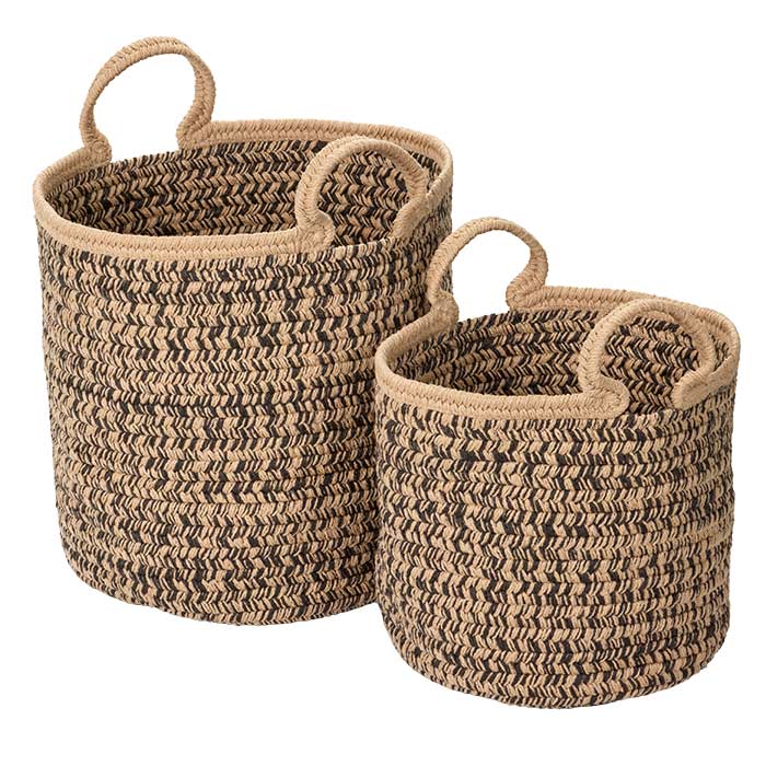 This stylish set of 2 woven baskets with a grey and tan chevron pattern will enhance any classroom, office, or lobby decor.