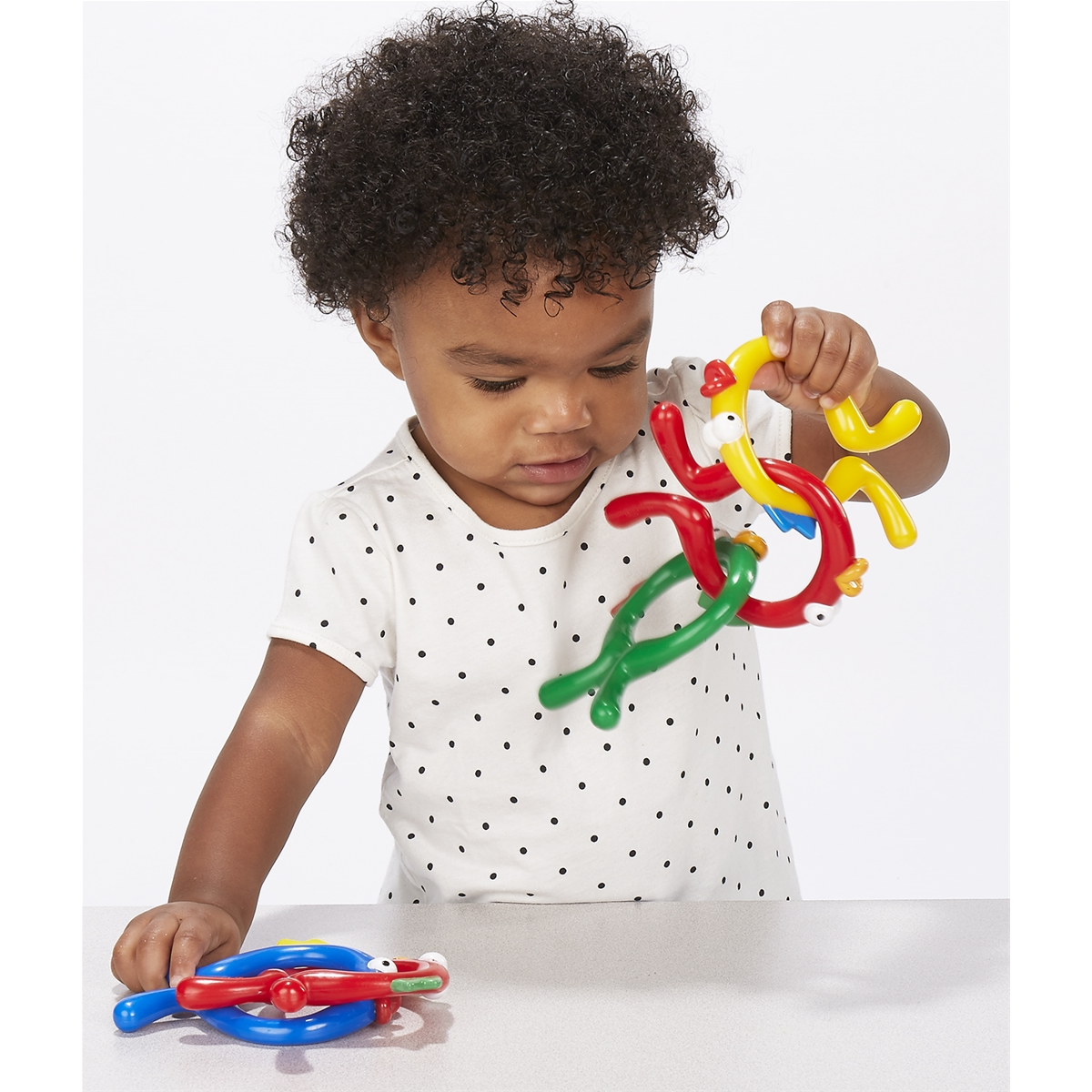 Connect, collect, string and snap - lots of fine motor practice for babies and young toddlers. Each set has just enough for one or two children to play and easily manage clean up. This manipulative set for toddlers consists of Fishies (12 pieces), Baby Beads (16 pieces), Baby Connects (24 pieces), and Snap Beads (12 pieces).