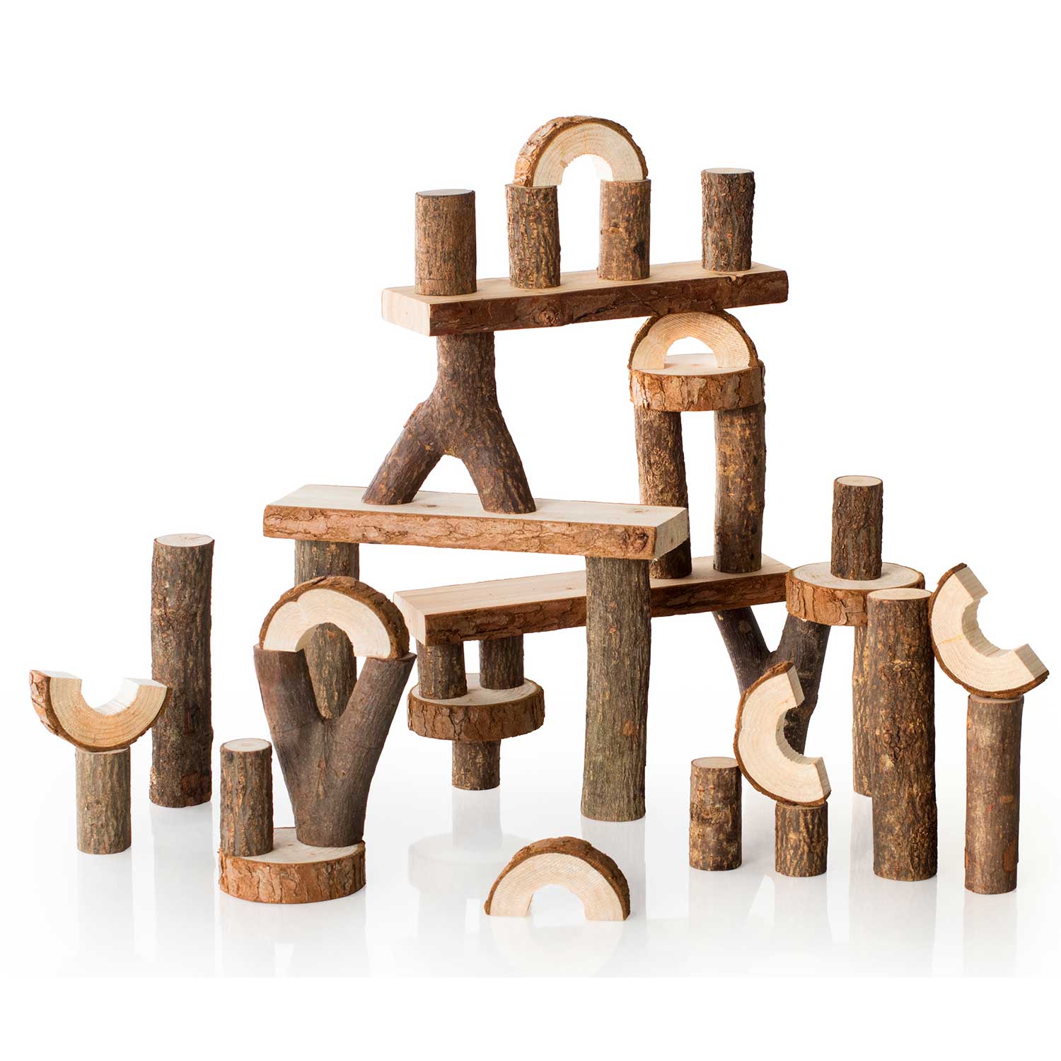 - Natural tree branch shapes cut into building blocks
