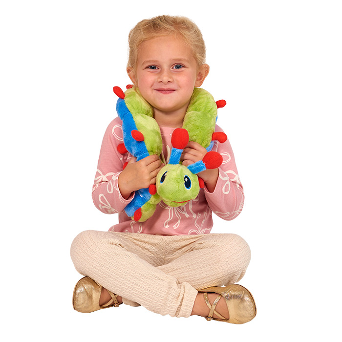 A big tool for big feelings. Calmee the Caterpillar is here to help a child use their breath to change the way they feel. Children can stretch Calmee to focus on breathing in and out, rest it around their neck to feel the weighted effects, or count and pet the 10 body segments.