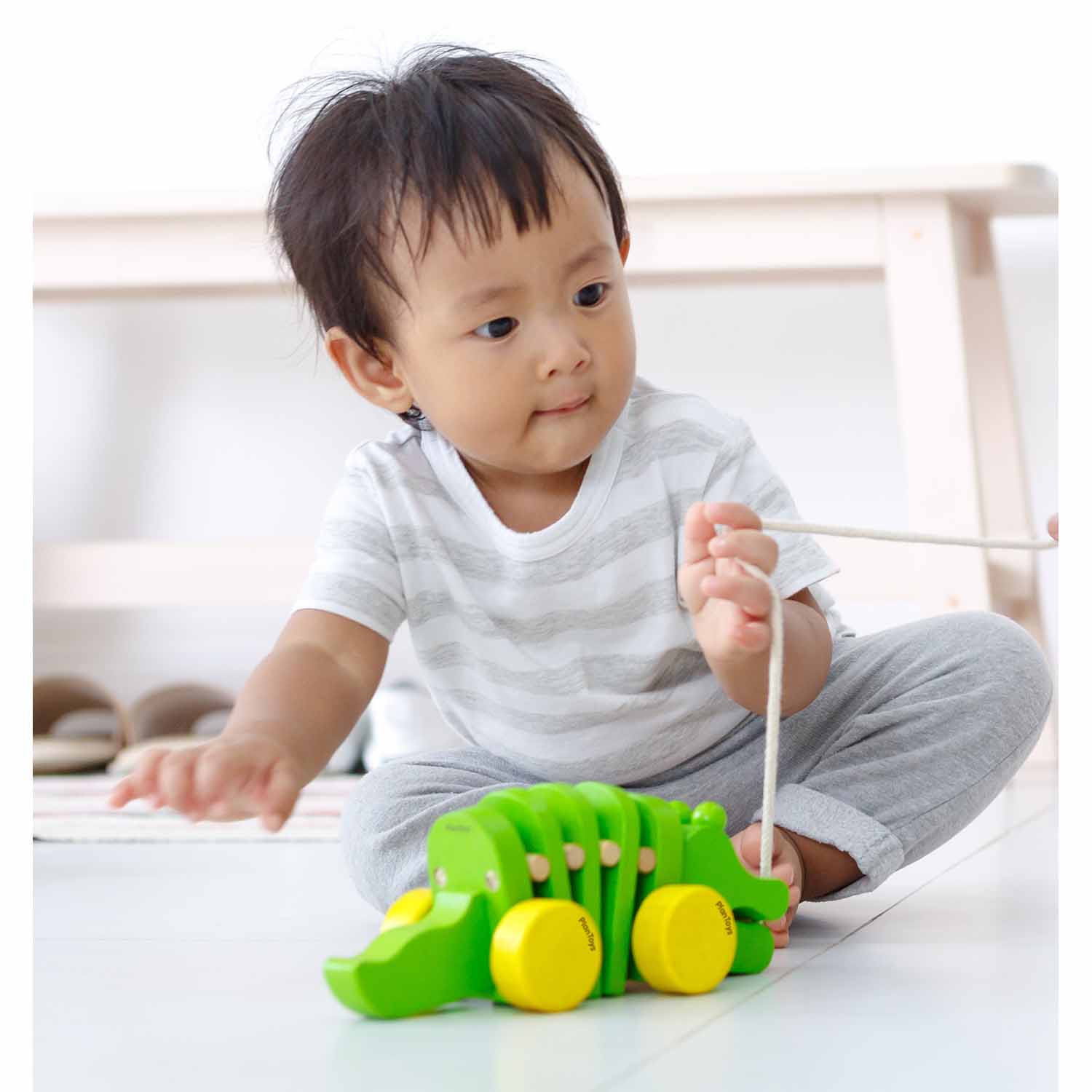 When pulled, the alligator will walk and make rhythmical click-clack sounds.