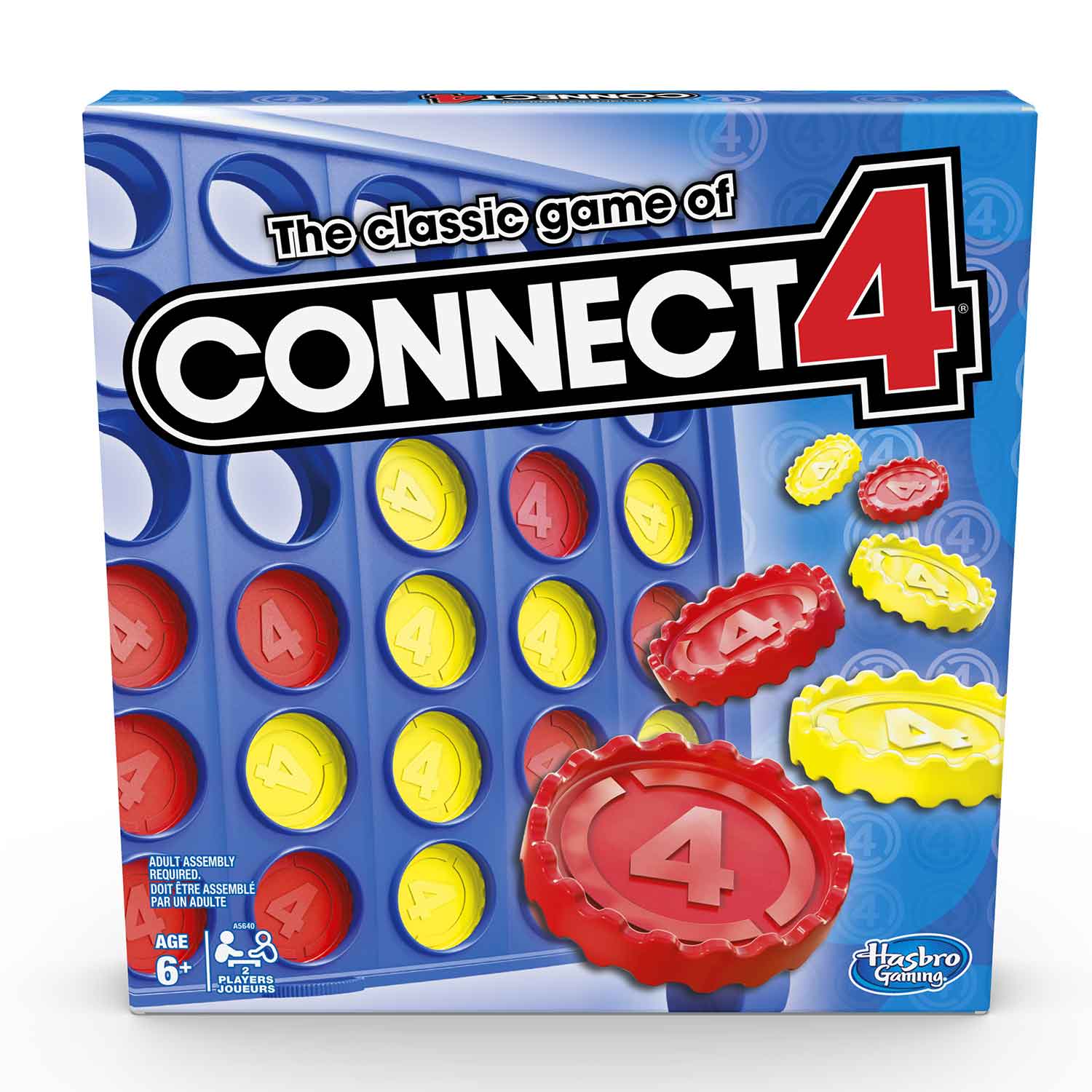 The classic vertical checkers game. Build a row of four checkers in any direction while blocking your opponent. Includes lockable grid, top locking mechanism, game base (doubles as a carrying handle), 21 yellow checkers, 21 red checkers, 2 scoring slides, 2 cardboard sliders and instructions.