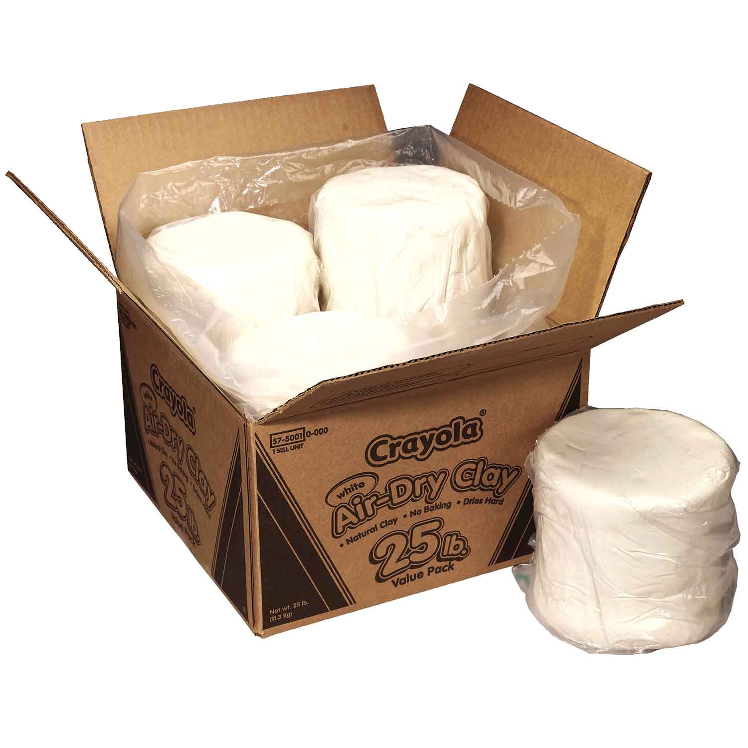 This clay is a fine, natural white earth clay which air-dries to a hard solid. Use it to make sculptures, decorative items or plaques. No baking or firing needed. Crayola Air dry clay can be painted with tempera, acrylic or watercolors when dry.