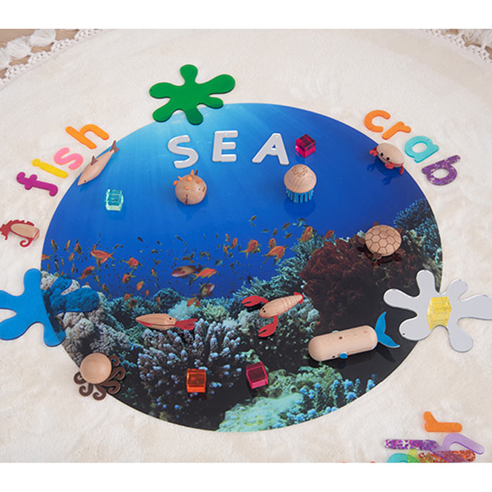 These colorful, semi-translucent playmats feature detailed images that become more vivid and engaging when placed against a light source. The set consists of space, ocean and forest themes. Children will love using this playmat for sensory play and small world building, providing a colorful and imaginative backdrop for their playtime adventures. The mats fit perfectly in the Sensory Mood Discovery Table.