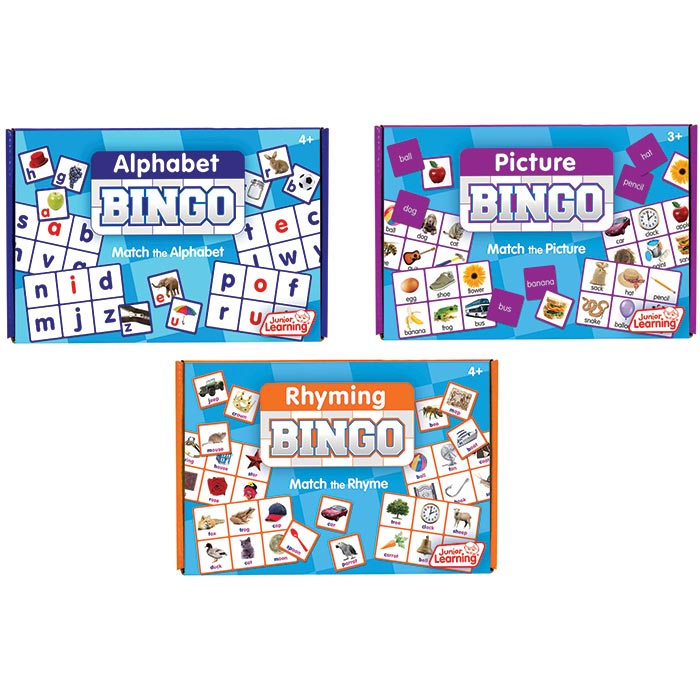 The Early Bingo Games Set includes three fun and educational games that help children improve their vocabulary, alphabet recognition, and phonemic awareness skills. Picture Bingo features vibrant illustrations that allow kids to match common objects. Alphabet Bingo teaches children letters and sounds, while Rhyming Bingo combines the excitement of bingo with the educational benefits of learning rhymes. This set is perfect for preschoolers and early elementary students, offering a playful way to reinforce essential literacy skills.
