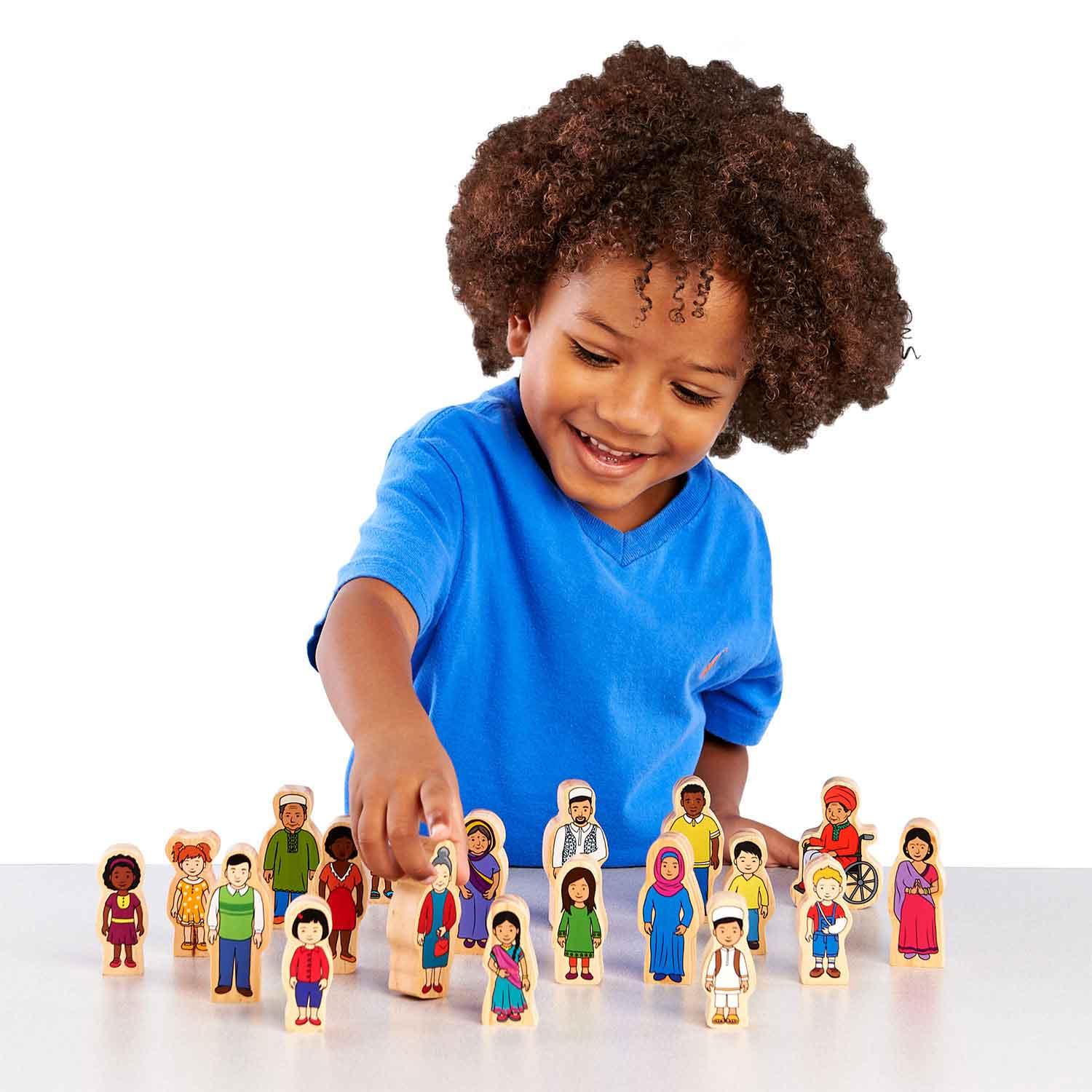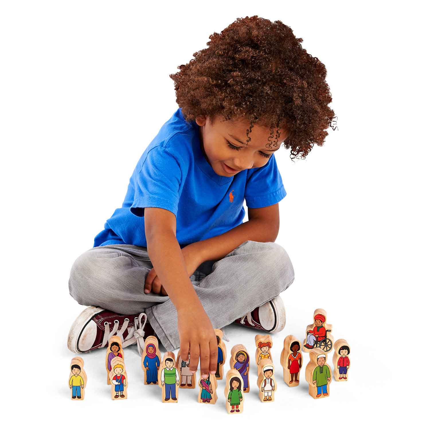 Great for role playing and storytelling, this set of lightweight wooden blocks represents the diverse, multicultural families that make up our local communities. Figures are screen-printed on both sides with a range of ages, ethnic backgrounds and genders represented.