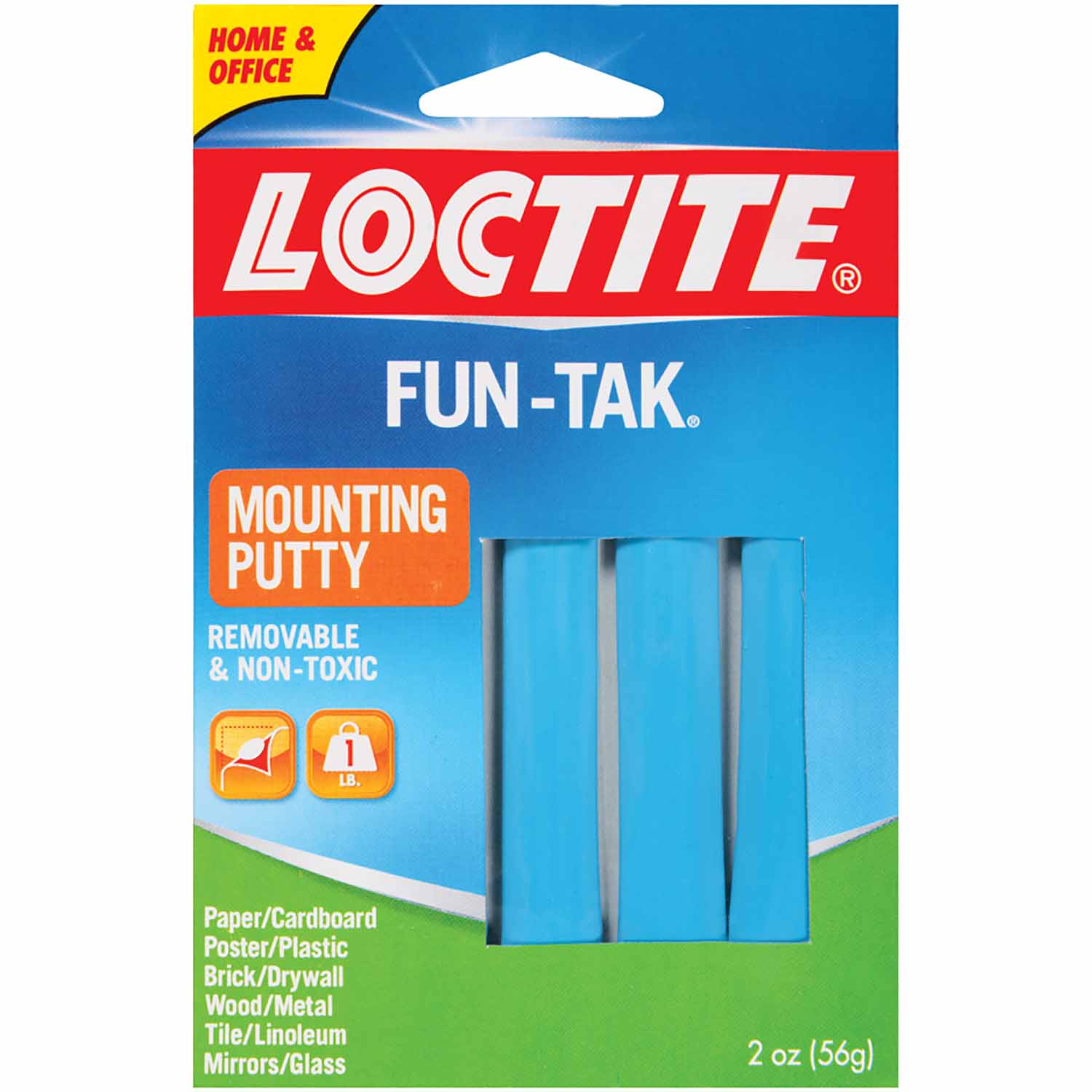 Fun-Tak is a reusable, repositionable adhesive that is a convenient alternative for tape, tacks, staples, and magnets in the home, school, and office. No more holes in walls or chipped, peeled paint. Ideal for hanging any lightweight item to a smooth or hard surface. Fun-Tak Mounting Putty repositionable adhesive is unaffected by moisture and will not dry out. For interior use only.