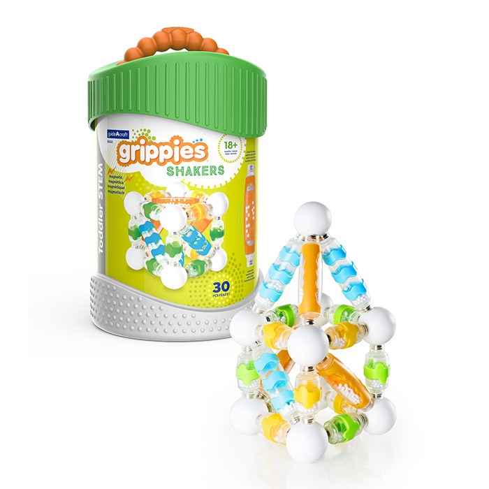 Toddlers exercise their sensory, fine and gross motor and engineering skills with these engaging, acoustic construction pieces. Watch and listen as the playful beads rattle down the magnetic rods through clear plastic windows!