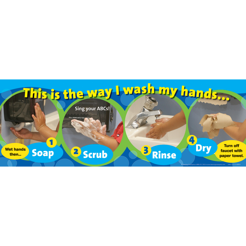 Looking for a great handwashing poster for the classroom? This step-by-step guide shows young children the four steps for proper hand washing and encourages them to sing the ABCs while they wash their hands. Consider adding this item to your PPE checklist!