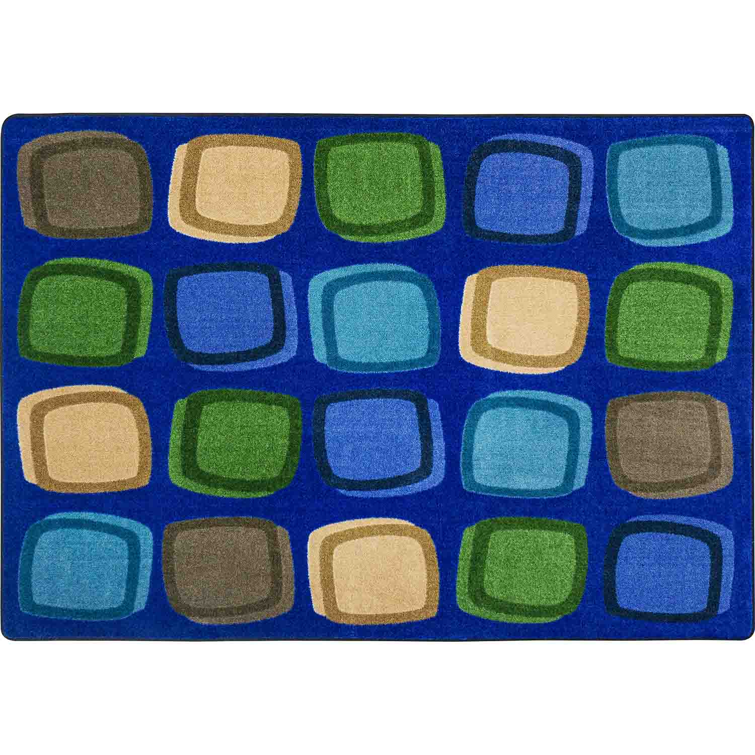 Generously sized blocks and peaceful colors make this area rug an ideal place to practice self-awareness, manage emotions, and lower stress levels.