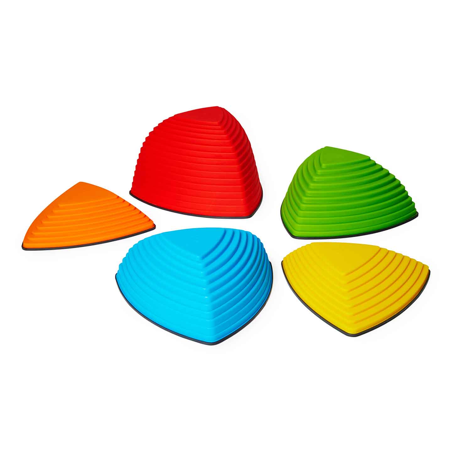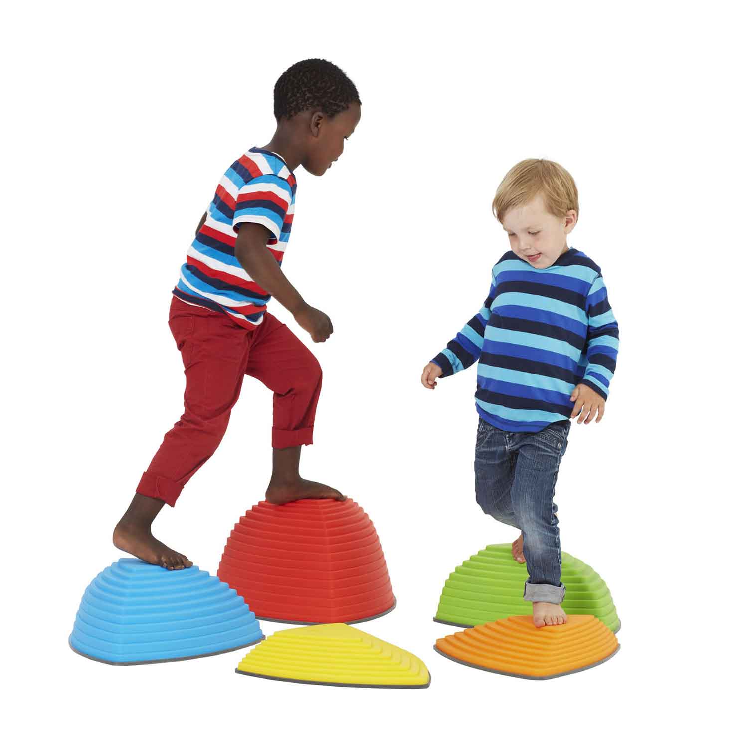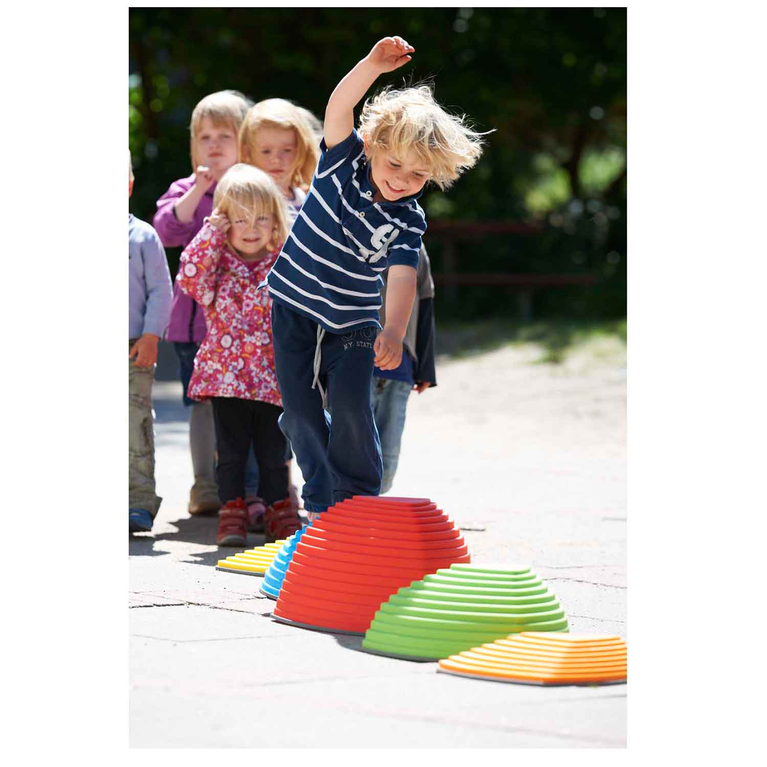 Designed to help children improve their coordination and balance, this set also help to develop the ability to estimate distances. Hill Tops feature three varying to encourage children to jump from top to top. Their stable design makes them perfectly safe for jumping activities, and each one has a non-slip rubber rim.