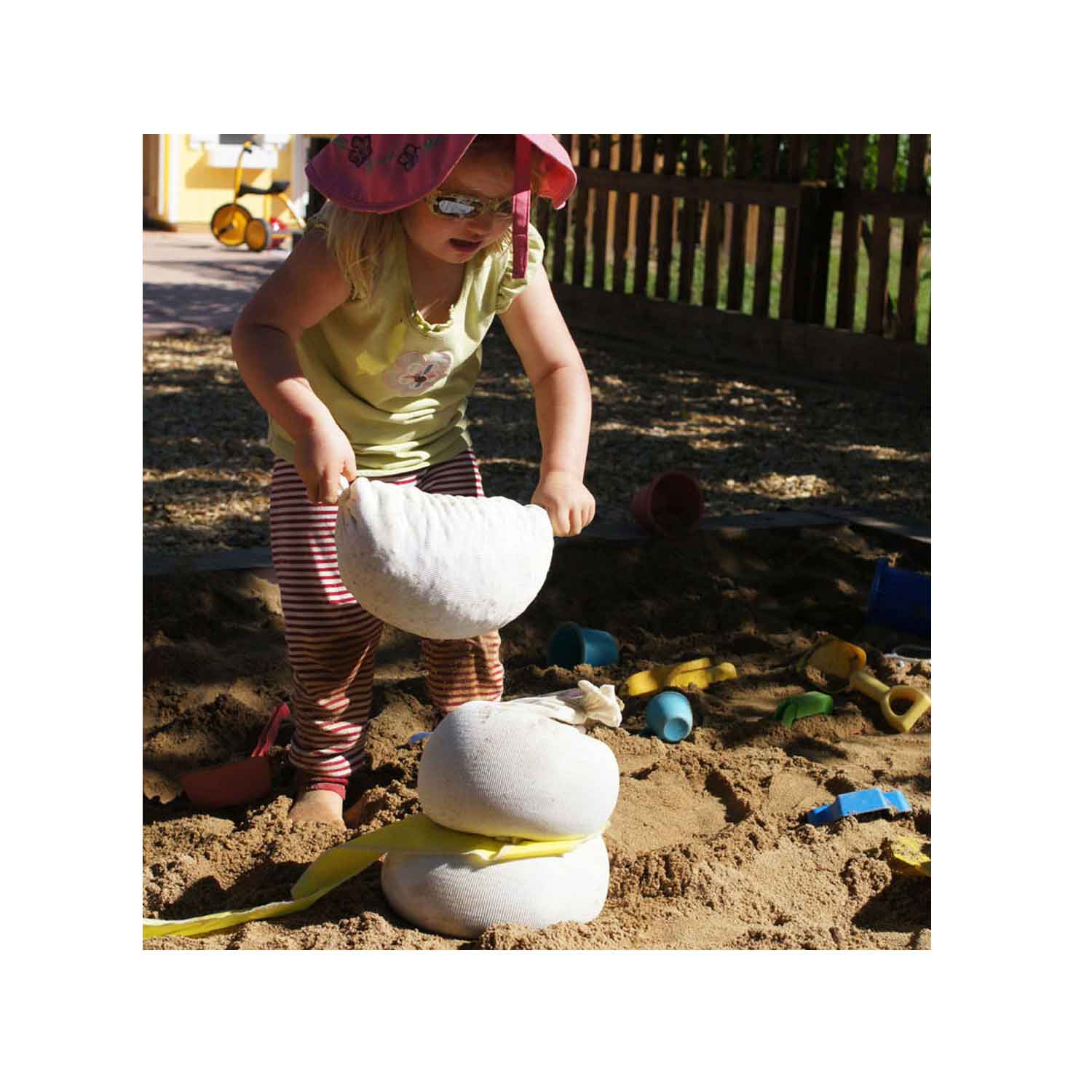 Create your own sandbags! These hearty indoor/outdoor bags arrive empty, sewn on one end, so children can help fill them with sand or other materials. Once filled, simply fasten the other end and unleash the imagination! Use them as building blocks or supports for other projects. Bags come in two sizes - the small are about the size of a cucumber when filled (3½" x 7"), and the large are about the size of a spaghetti squash when filled (about 5" x 11").