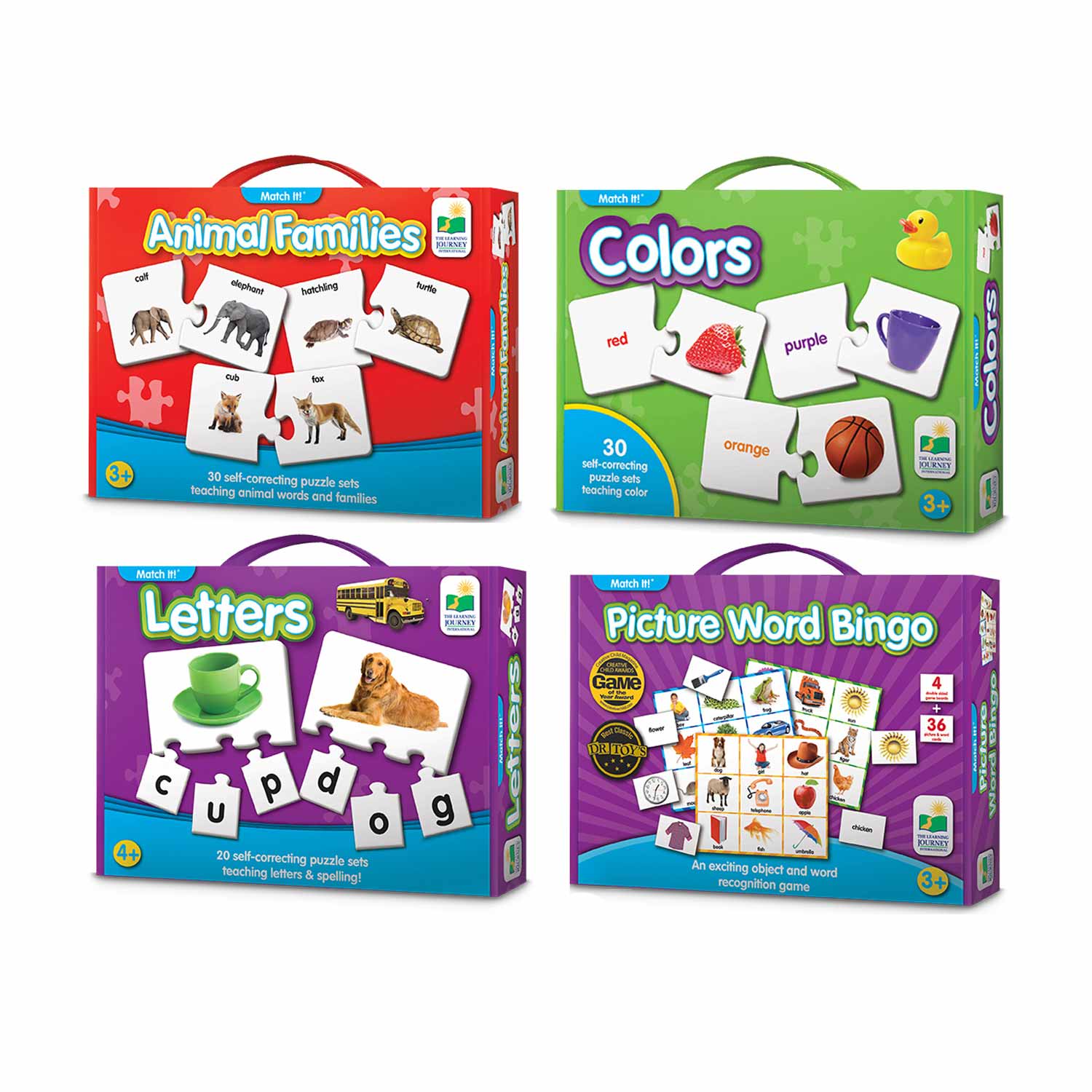 - Set of 4 (Letters, Colors, Animal Families & Picture Word Bingo)