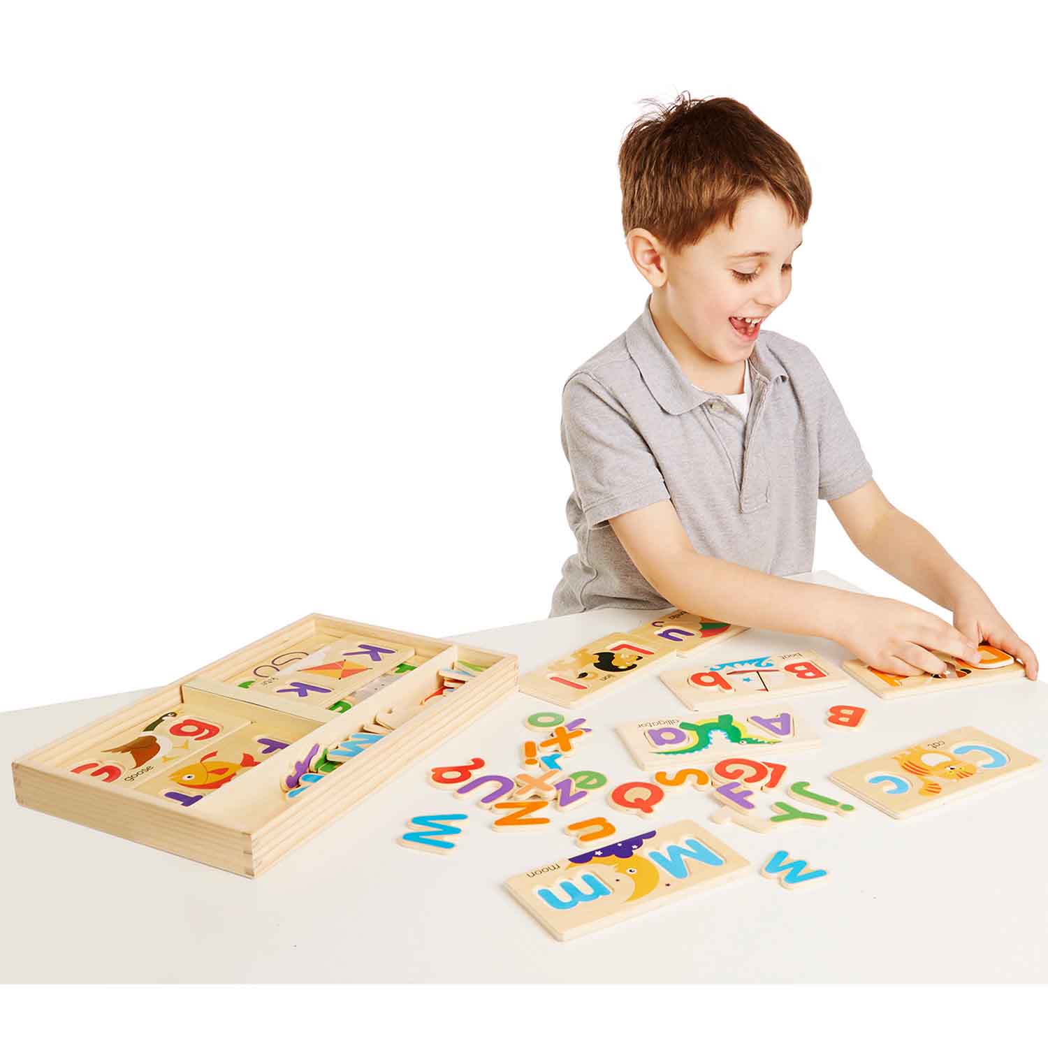 These illustrated boards are a great way to work on letter and word recognition. Includes 13 double-sided boards with 52 wooden letters (upper and lowercase).