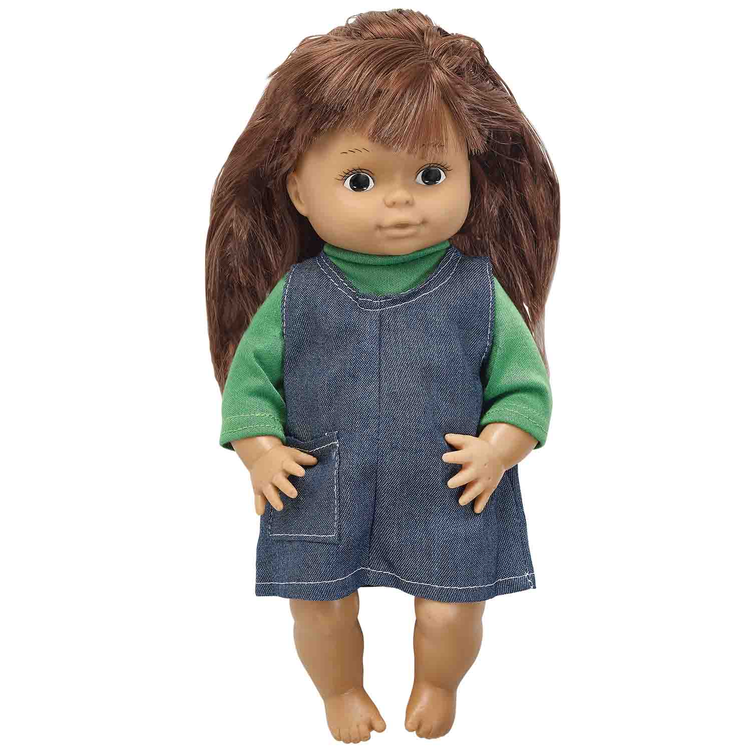 These multi-ethnic dolls have accurate features and coloring with movable arms, legs and head. Girl dolls have rooted hair, boy dolls have painted hair, and all eyes are painted on for safety. The dolls are squeezable and durable, and all outfits are removable for extra play value.