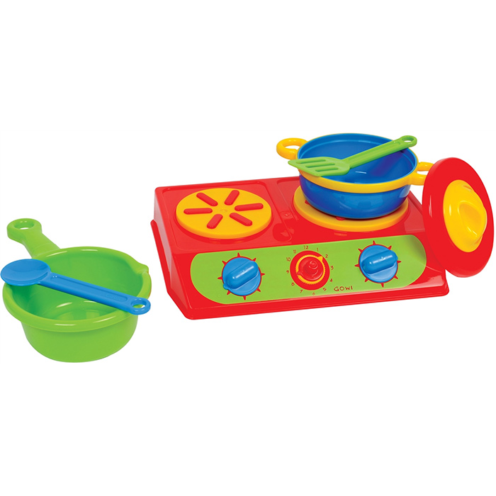 Young tots will role play familiar activities with this complete set of cooking pots, utensils, and accessories. Durable plastic will hold up to everyday use!