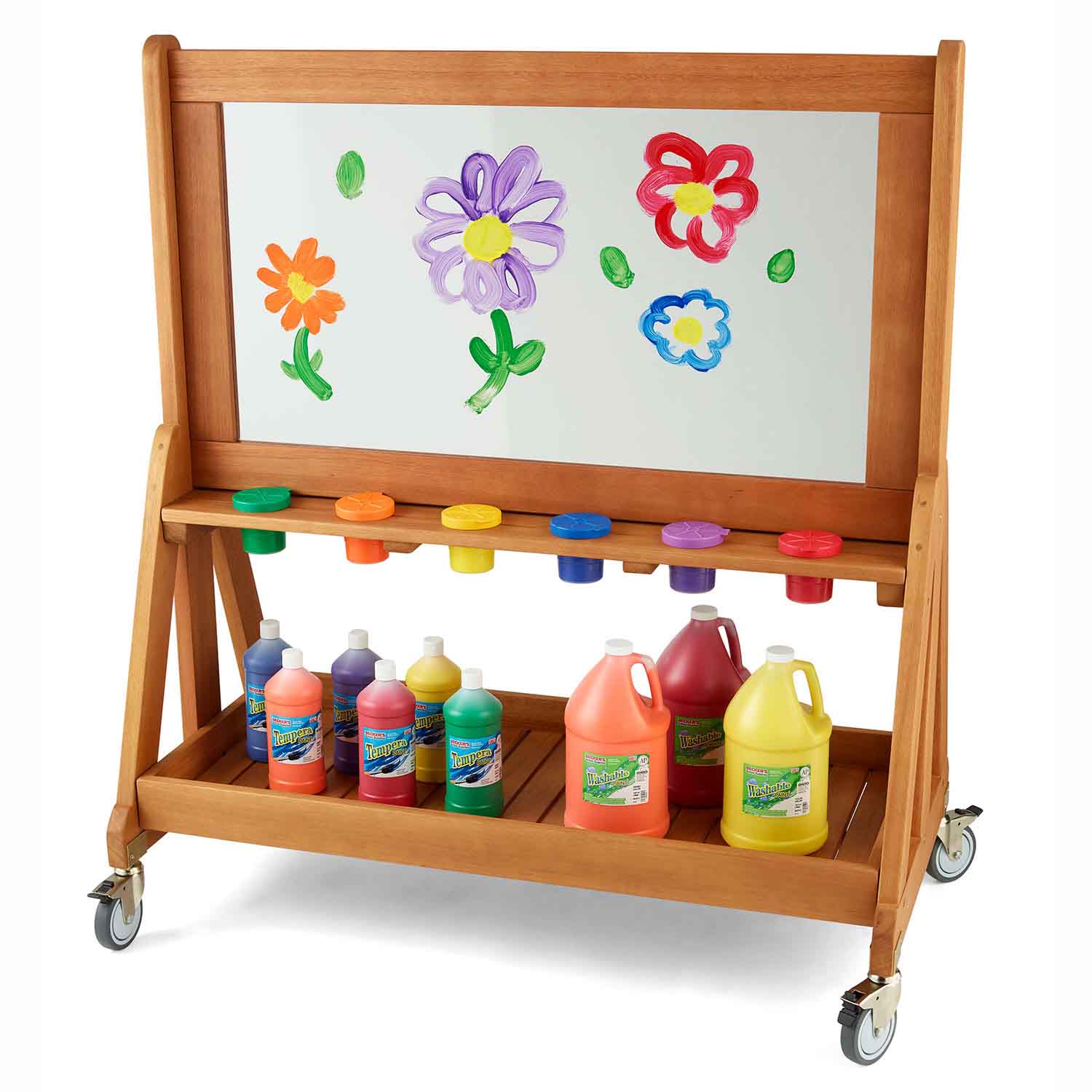 Paint or draw directly onto this double-sided clear acrylic surface with water-based art materials or add painting or easel paper. Also great for collaborative artworks as children can work side-by-side.
