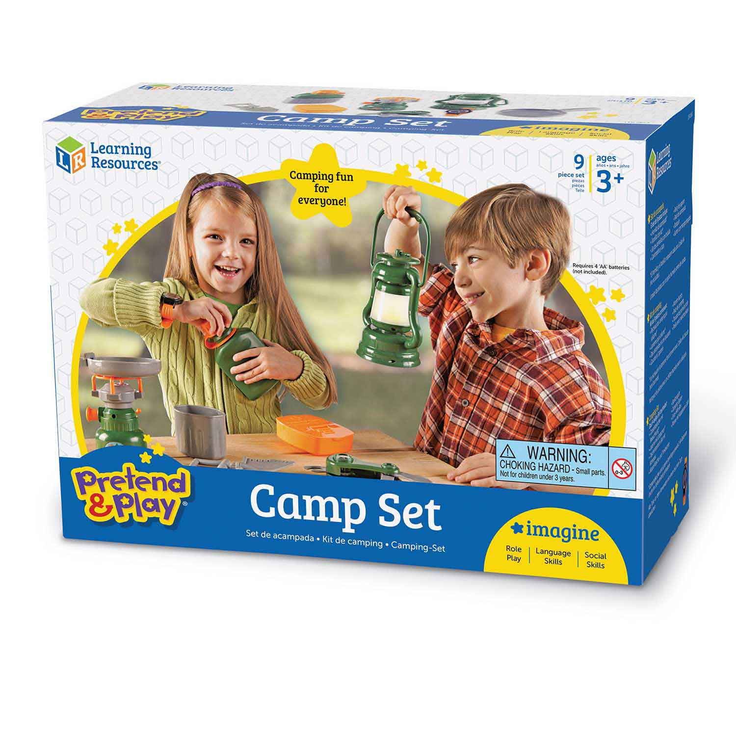 Let’s go camping! Unique battery-powered pretend stove and lantern make your campsite almost like the real thing. Perfect for independent or collaborative play.