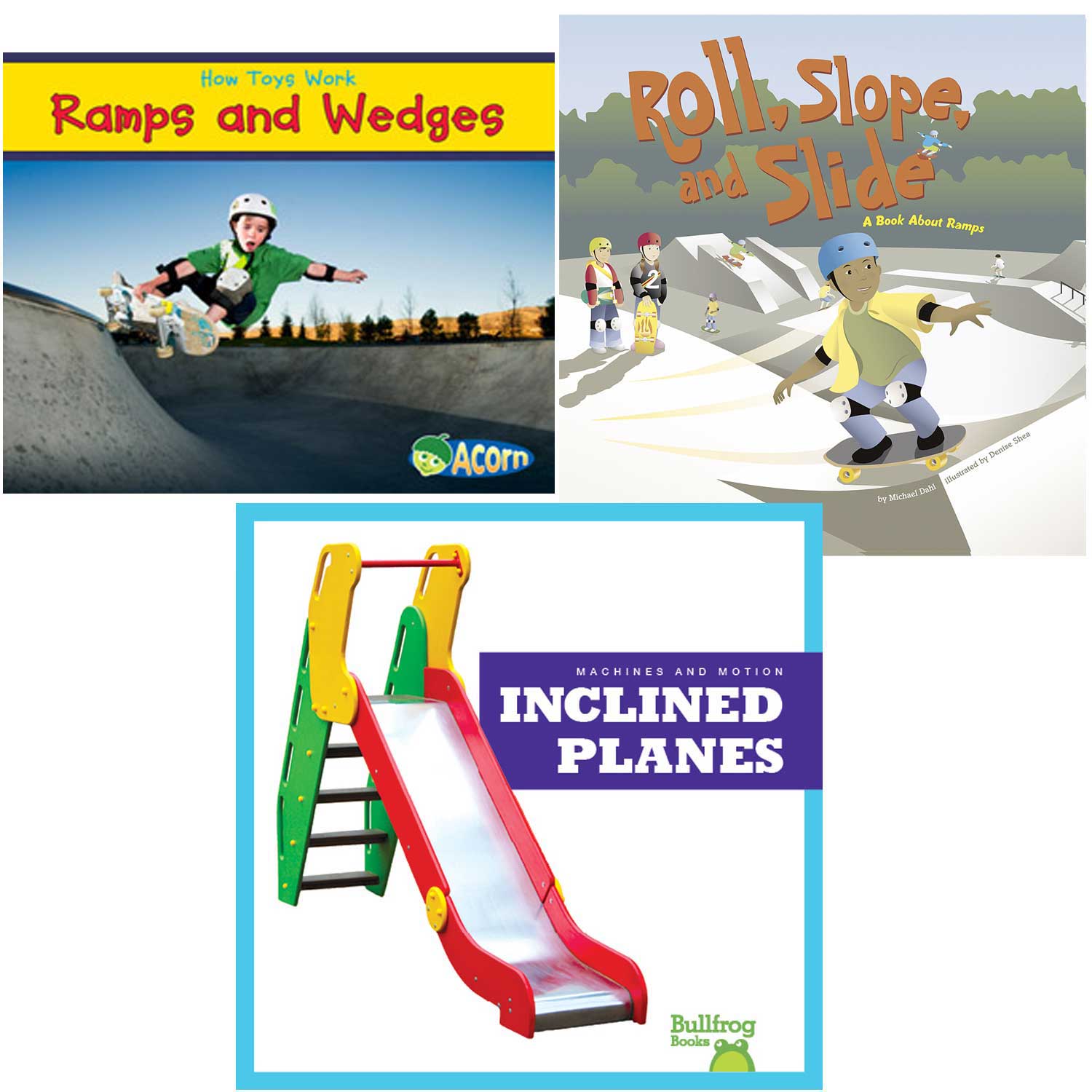 Ramps, slides and inclined planes add fun and function to our world! The STEM-based book set introduces the physics and engineering of ramps with easy to understand language and familiar examples.