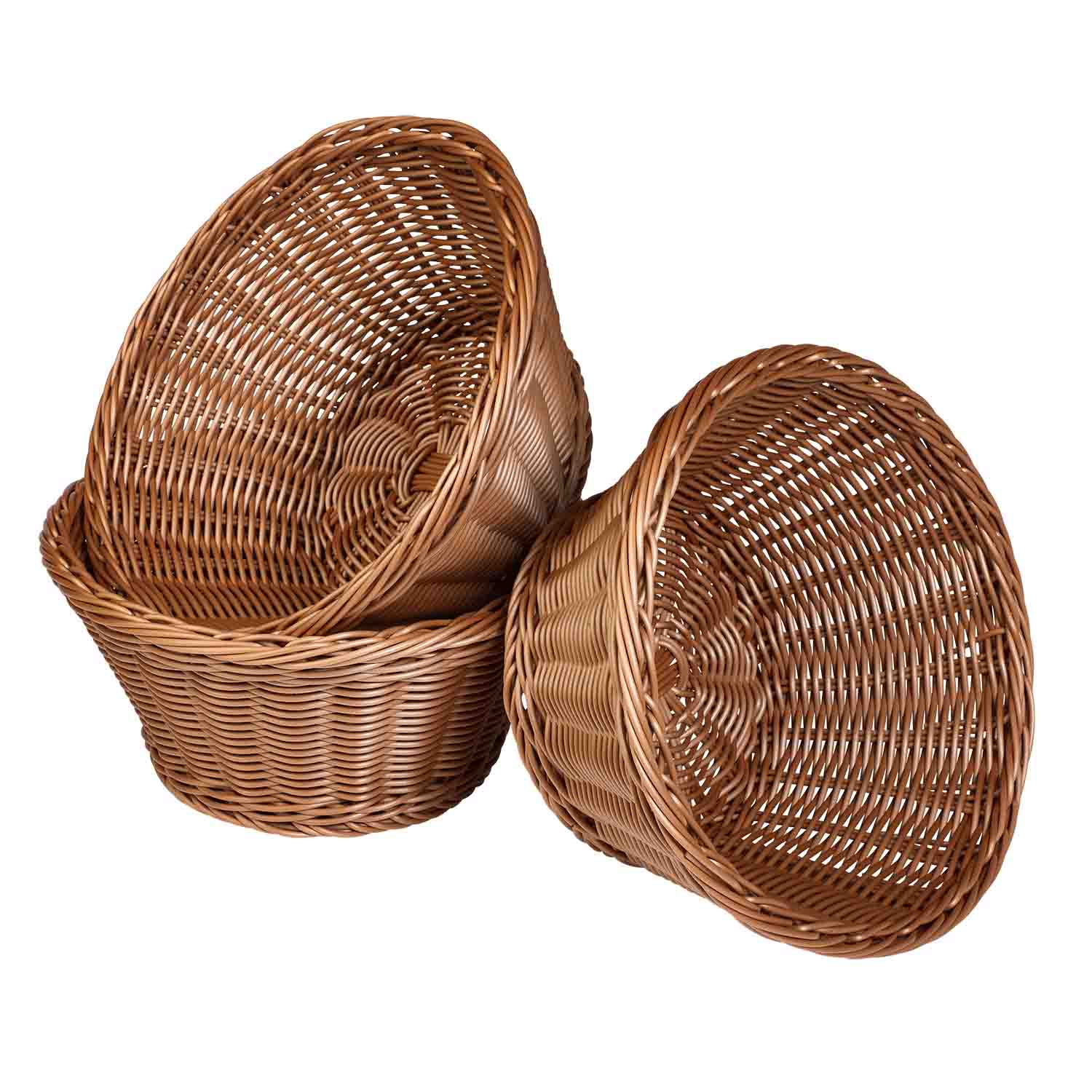 These round baskets combine the durability of plastic with the look of wicker to provide a practical, versatile and attractive storage solution!