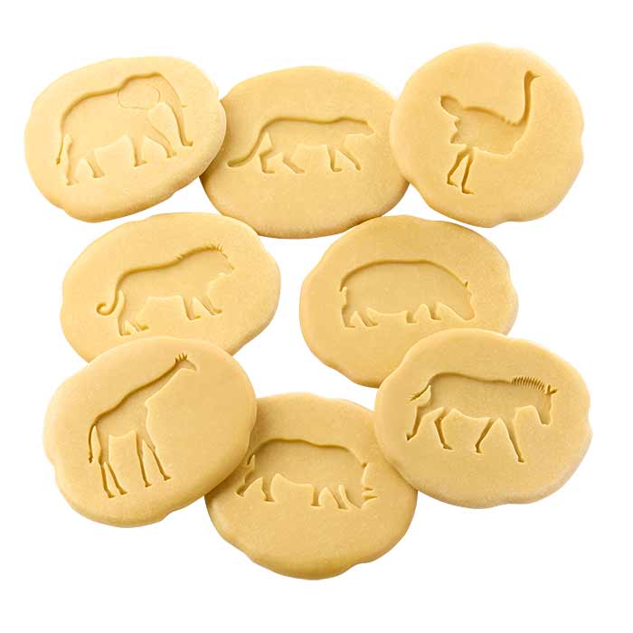 Take a walk on the wild side and explore what animals you might find on the African savanna as you follow their tracks. Each stone has a raised footprint on one side and the related creature in relief on the other. Watch out for the following animals: lion, elephant, rhinoceros, giraffe, hippopotamus, ostrich, cheetah and zebra. The footprint stones can be used in sand, water and soil, and are easily washed clean for a new adventure.