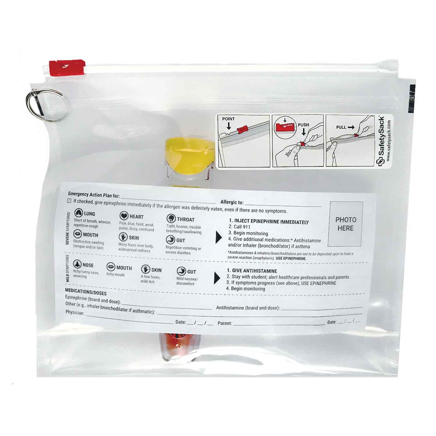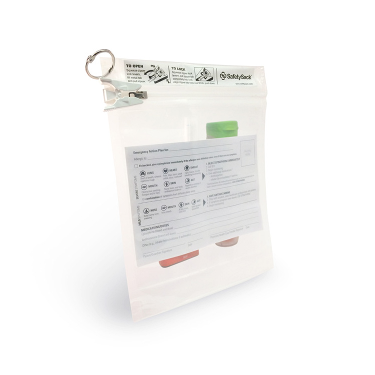 Designed to provide safe and secure storage for required and emergency medications (such as an EpiPen or inhaler) that need to be accessed quickly. Form for a detailed emergency plan is included. Pouch with child-resistant lock is 8" x 10" x 2½".