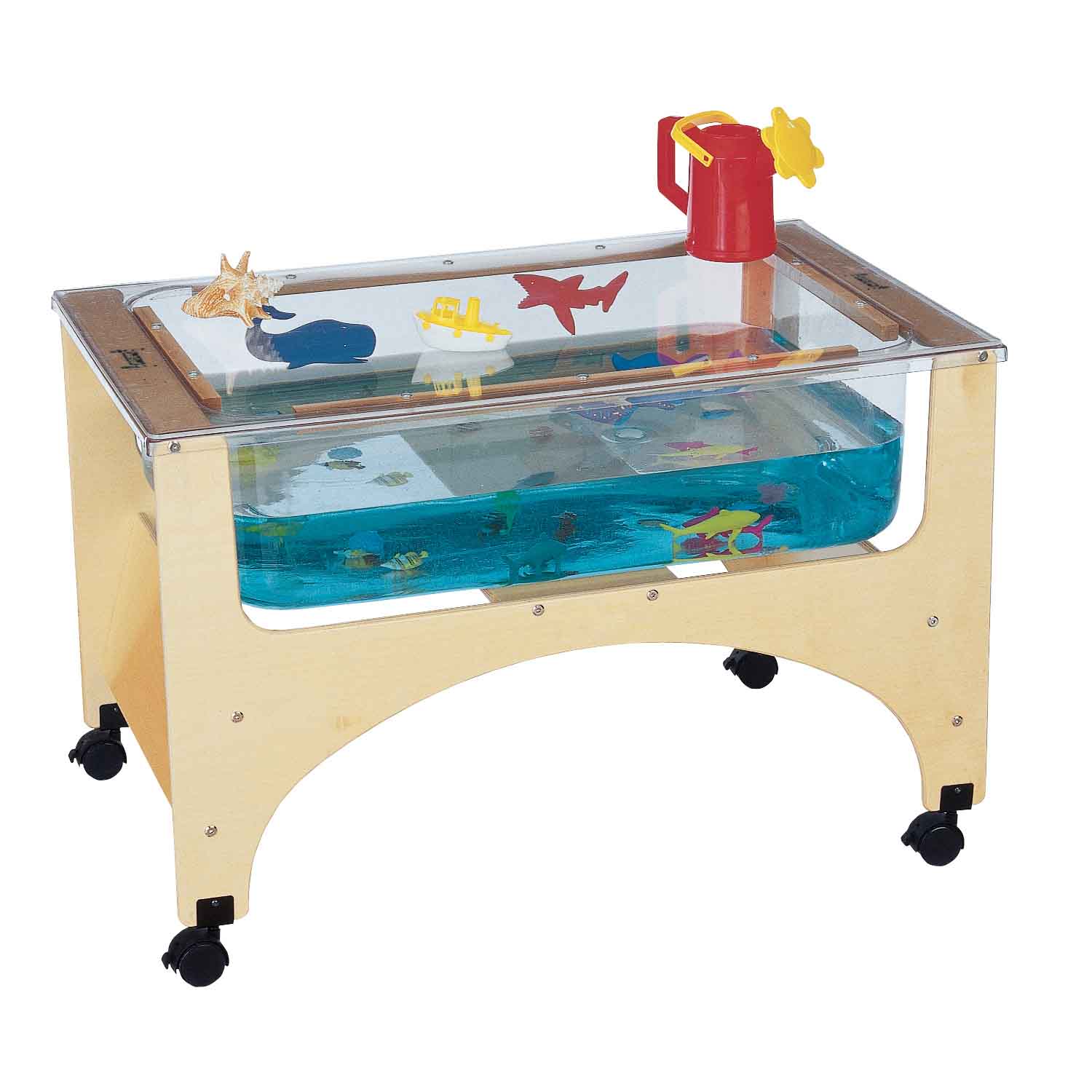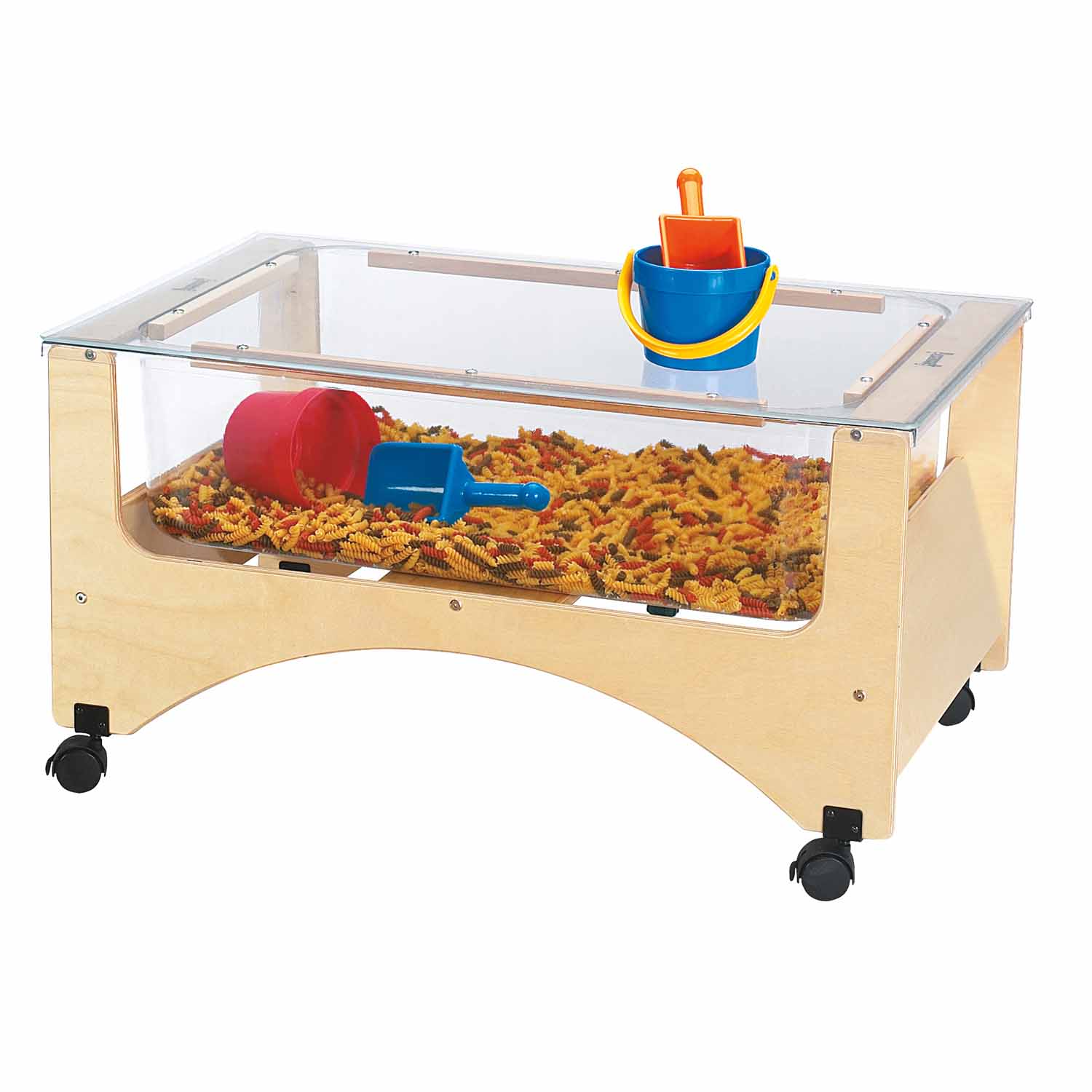 Provides ultimate splash control with clear, tuff, 9"D acrylic tub. See-thru cover included. Ready to assemble. Drain with valve offers an easy way to empty unit.