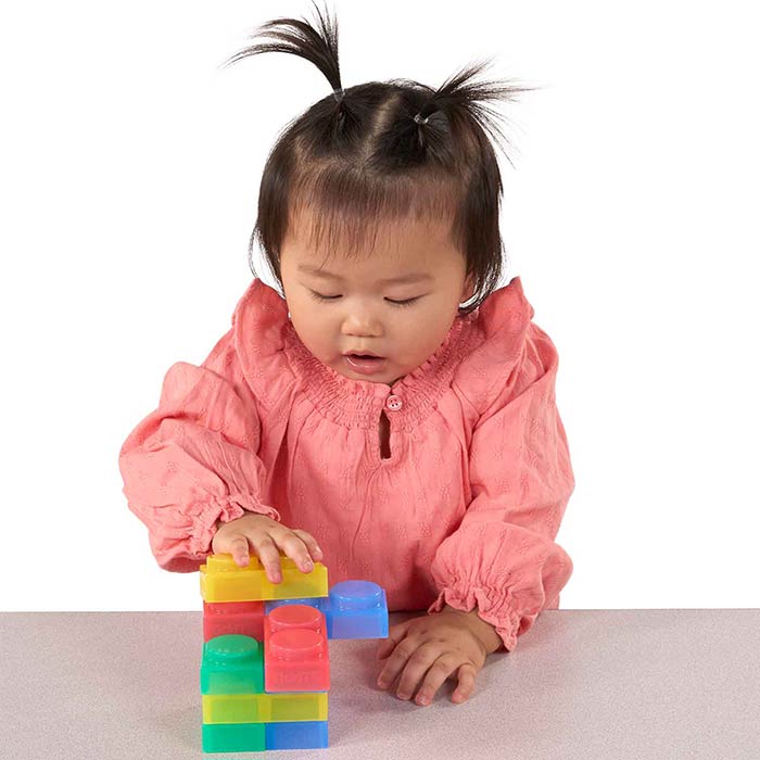 Made from transparent silicone, these interlocking soft bricks are perfectly sized for young children. They're an ideal first construction set and can be used indoors or out—great for the light table, too!