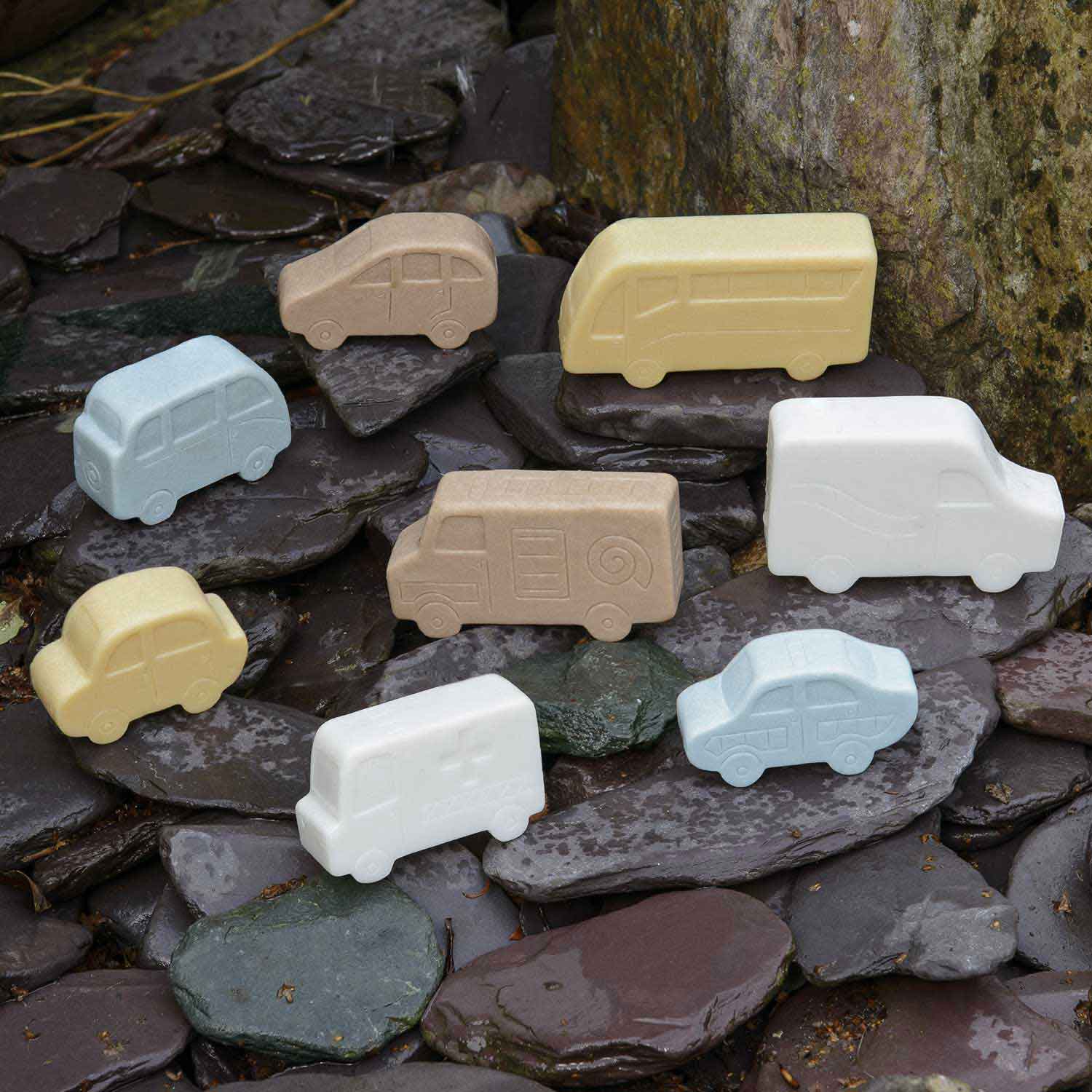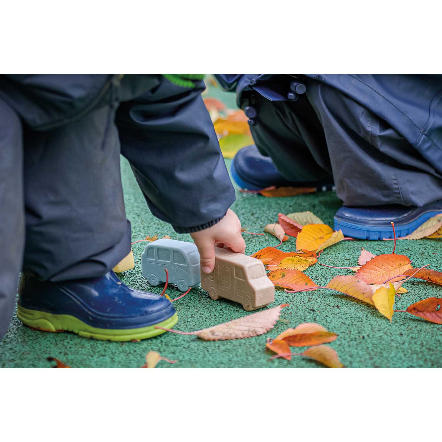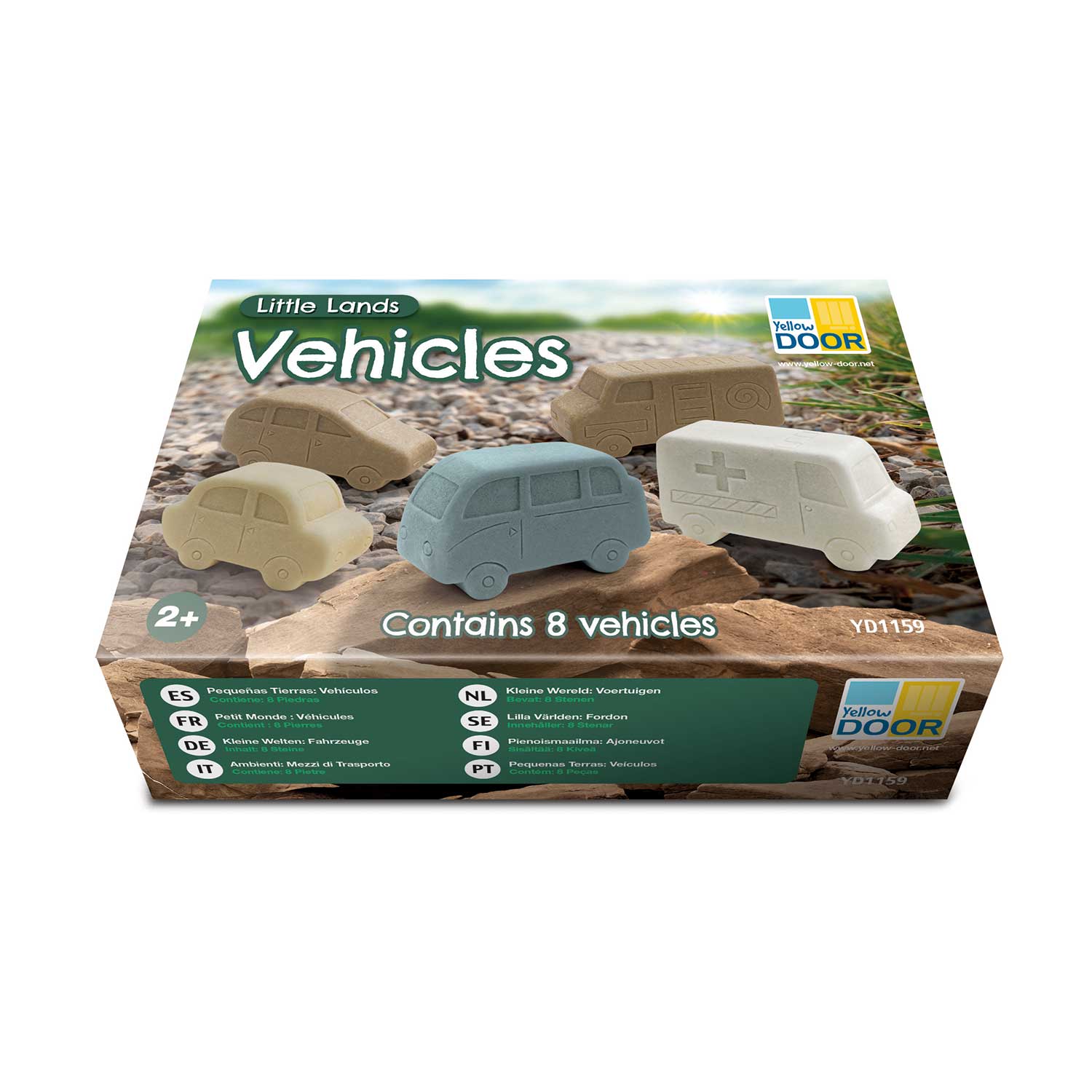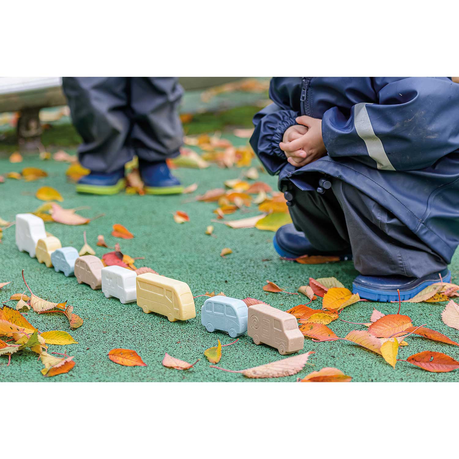 The Small World Vehicles feature a mix of everyday and emergency vehicles. Perfectly sized for little hands, the sculptures have engraved features and are easily recognizable. Created using a durable stone mix, they are tough enough to use outdoors, whatever the weather! Includes ambulance, camper van, bus, station wagon, fire truck, police car, mini SUV, and van.