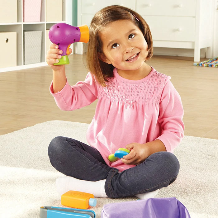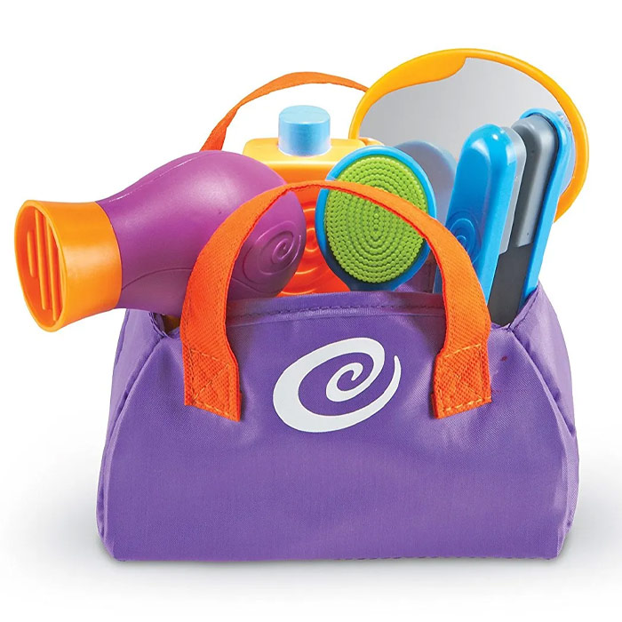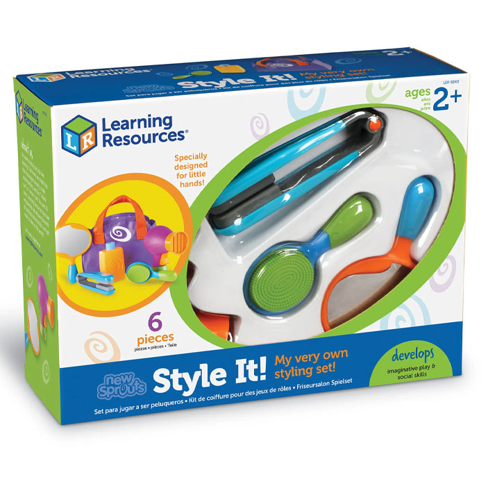 Look your best with Sprouts Style It!, the ultimate styling set for trendsetters of all ages. This colorful assortment includes everything you need to channel your inner beauty guru, from the realistic hair dryer to the chic mirror. Designed with little hands in mind, each tool is the perfect size for easy maneuvering. Keep your essentials organized and readily accessible in the convenient caddy, complete with a brush, flat iron and shampoo bottle.