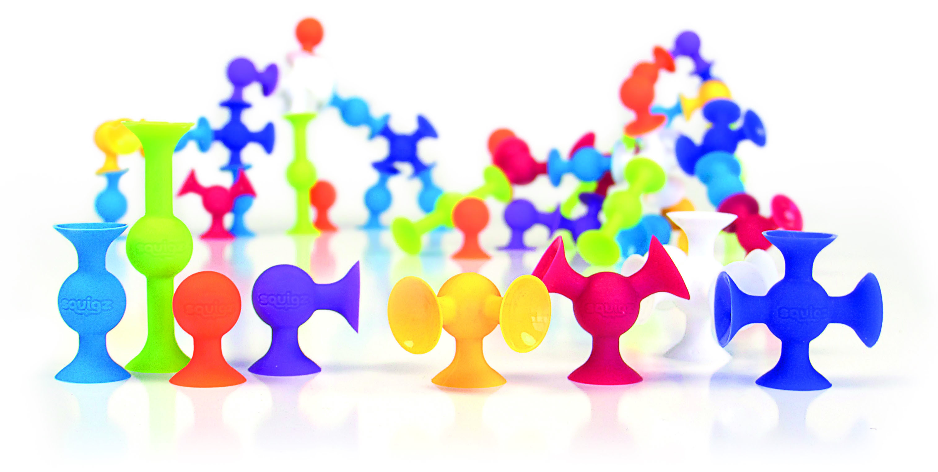 Push them together then POP them apart. Squigz will stick to virtually any surface-with no residue. Using suction construction and a little imagination, they will provide hours of creative play. This deluxe sized set is perfect for classroom use.