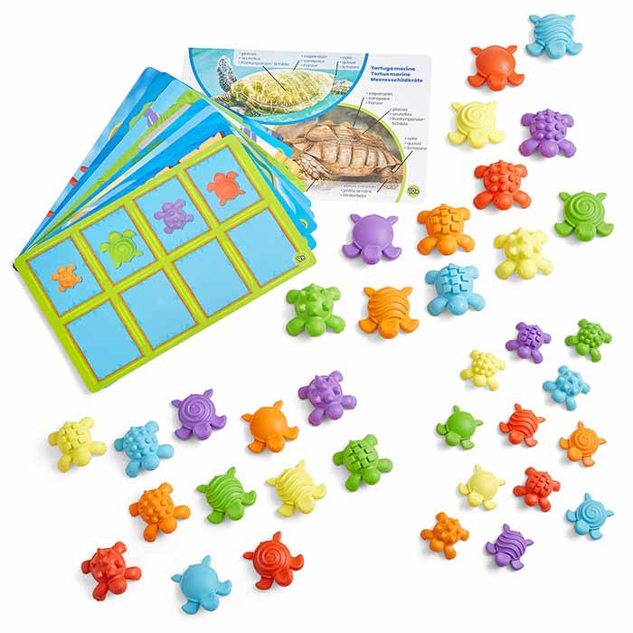 This engaging math activity set provides a sensory experience as children explore counting, sorting, patterning and more. Turtles vary by type, size, color, texture and shape. Includes 36 turtles, 10 double-sided activity cards and an activity guide.