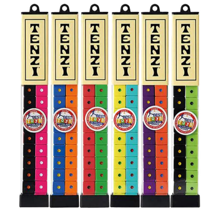It's the world's fastest game! Everyone gets ten dice. Someone says Go. Then everyone rolls and rolls as fast as they can until someone gets all their dice on the same number and shouts "TENZI"!