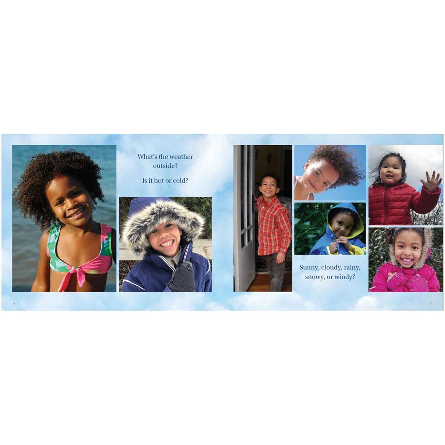 These tactile weather stones can be used for forecasting, reporting, or storytelling in any kind of weather! Weather symbols include dark cloud, light cloud, hail, rain, rainbow, snow, sun, sunny intervals, thunderstorm, and wind. Made from durable stone and resin mix. The book uses stunning photography and text to show off the wonders of the weather!