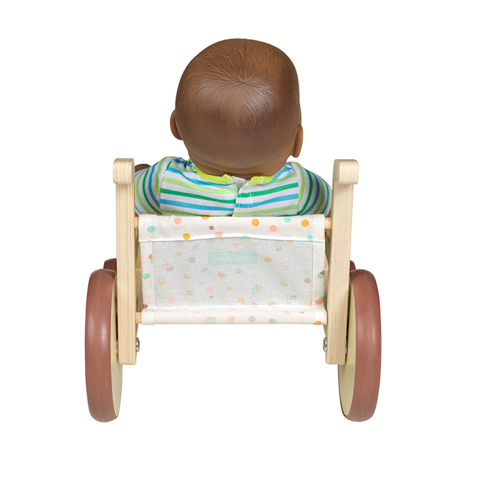 Promote social and cultural awareness with the Wooden Doll Wheelchair, designed for dolls up to 15 inches tall. This doll accessory is made from FSC-certified wood and features silent wheels for quiet play. It's an essential accessory that encourages social awareness and storytelling during role play.
