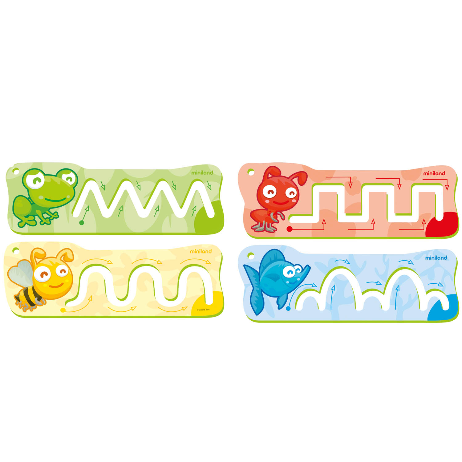 These templates help children pick up habits for pre-writing by drawing lines in a fun way. The patterns practice directionality and fine motor skills. They are easy to clean and can be used on a range of surfaces with pencils, crayons, chalk or finger paints.