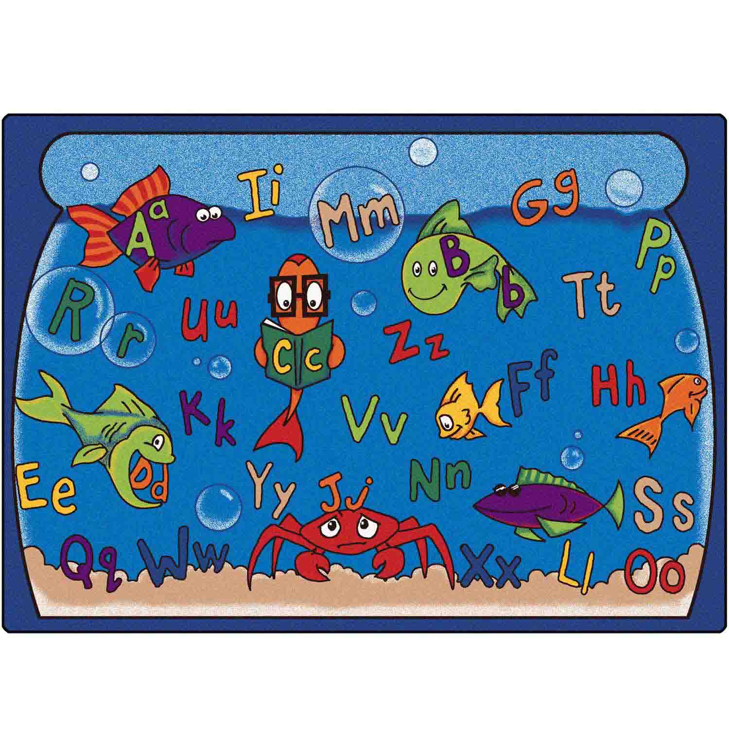 Go Fish! Kids will love this literacy classroom rug with its upper and lowercase letters in a bright whimsical aquarium theme. Early learners will master letter recognition, while first through third graders will enjoy the challenges of random letters placed throughout this classroom carpet.