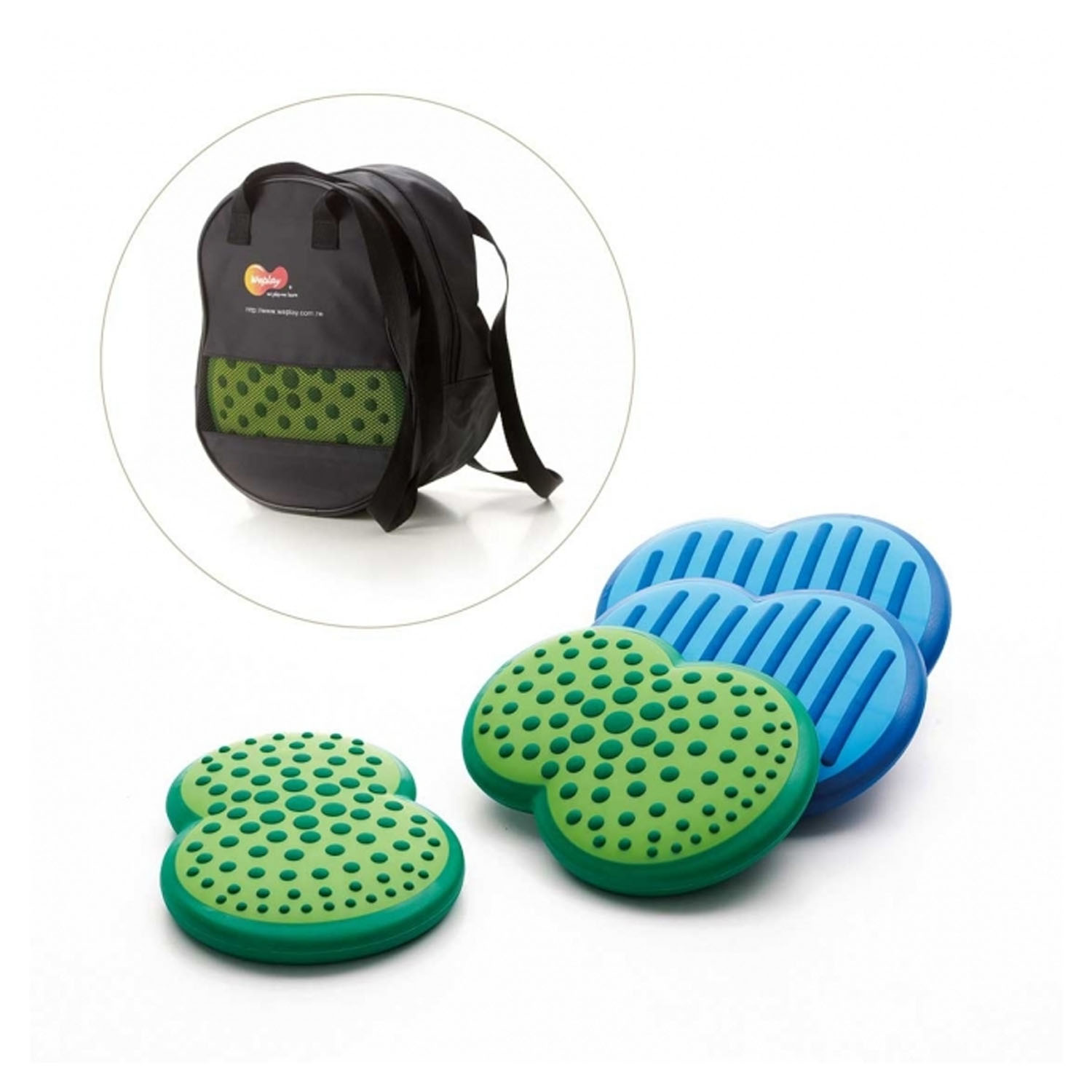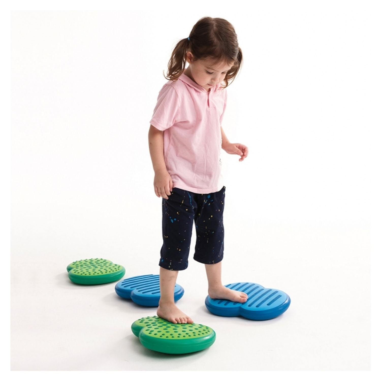 Help children improve balance skills and enhance physical coordination with these inflatable stepping stones. They feature hard and soft anti-slip surfaces with two different textured patterns to offer various levels of sensory intensity. Each stone can be inflated to adjust the balance, providing different experiences based on the inflation level.