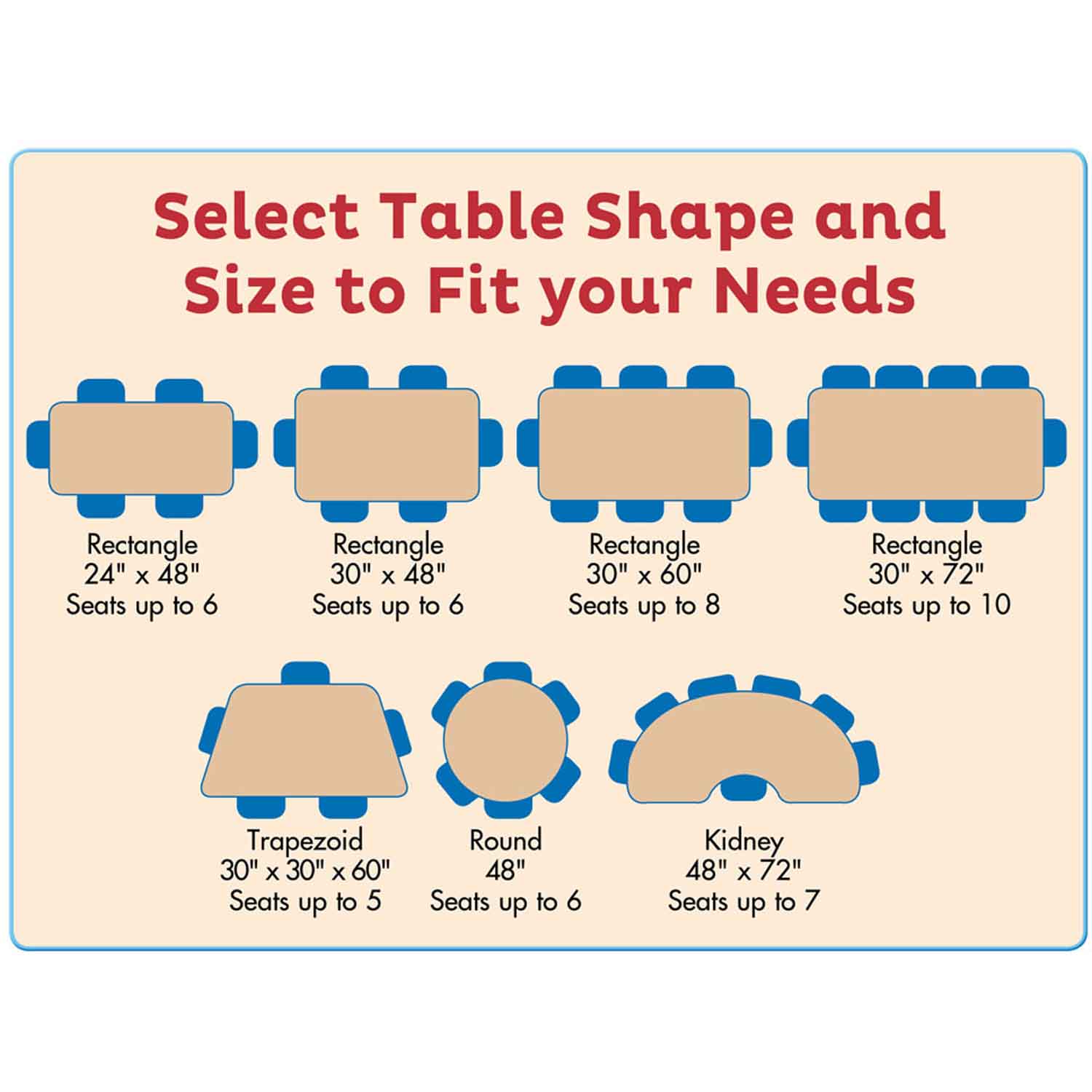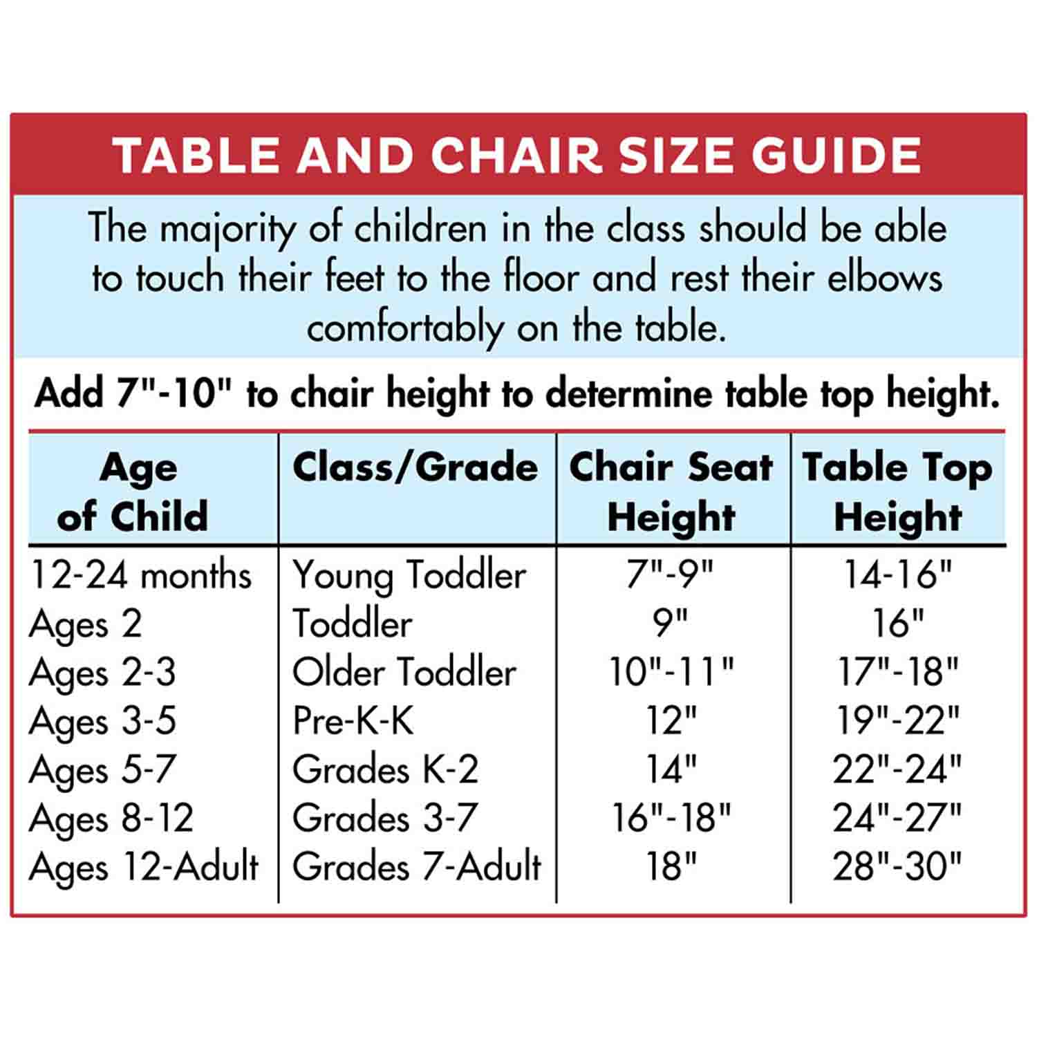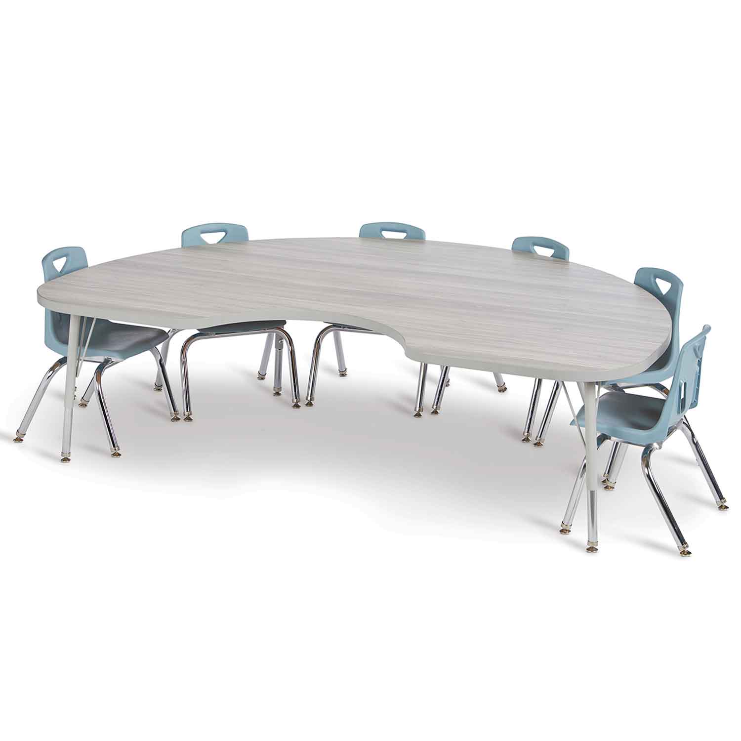 All the features you need and want plus a great new look for your classroom! The natural-looking driftwood gray surface and thermo-fused edging hold up to hard use and spills day after day–no hiding places for germs! KYDZSafe® edges, E-Z to clean, 1/8" thick laminate top, and nylon swivel glides to preventing. Everybody can be comfortable with 2 sizes available (Preschool and Adult) and each table further adjusts in one-inch increments. Minimal assembly with quick mount legs.