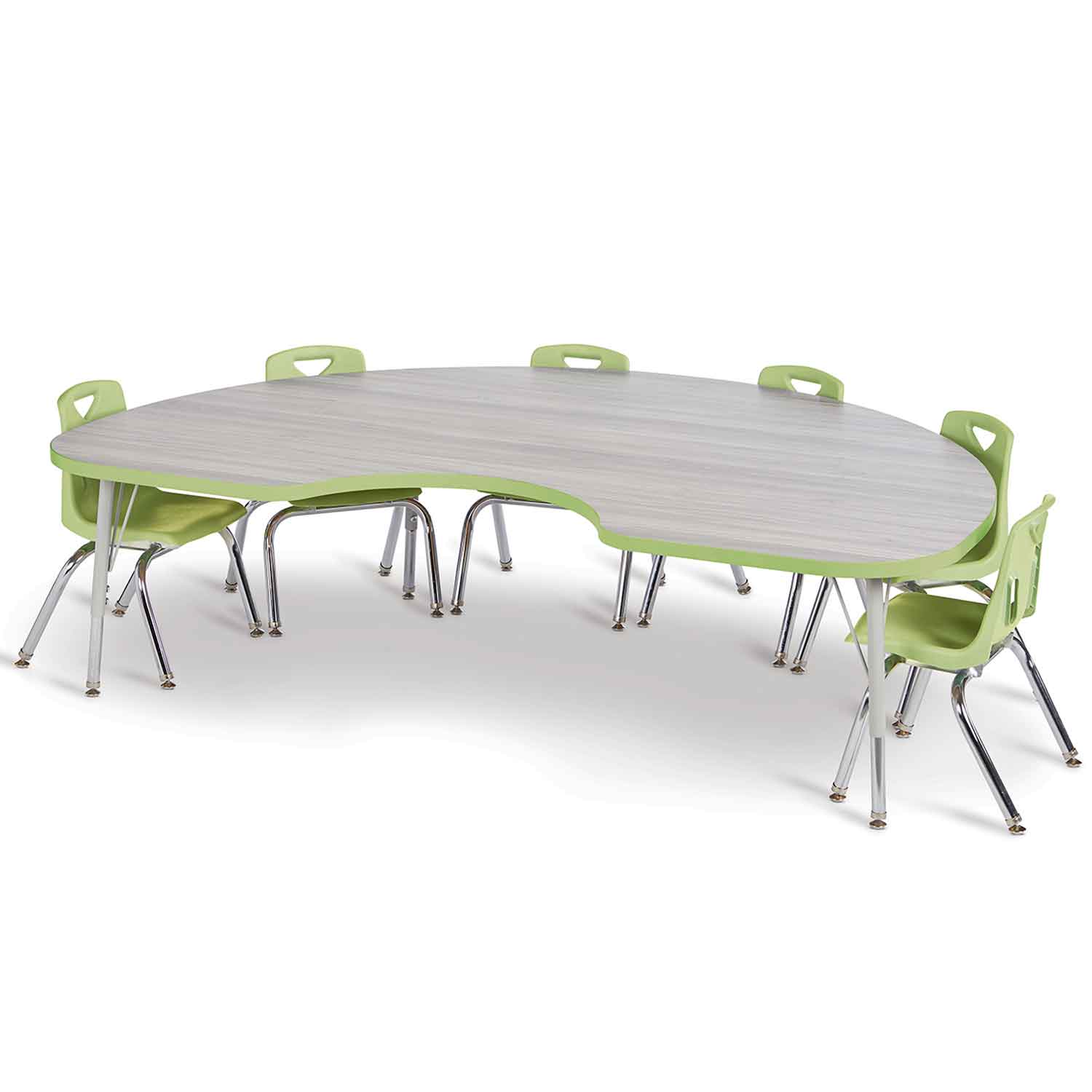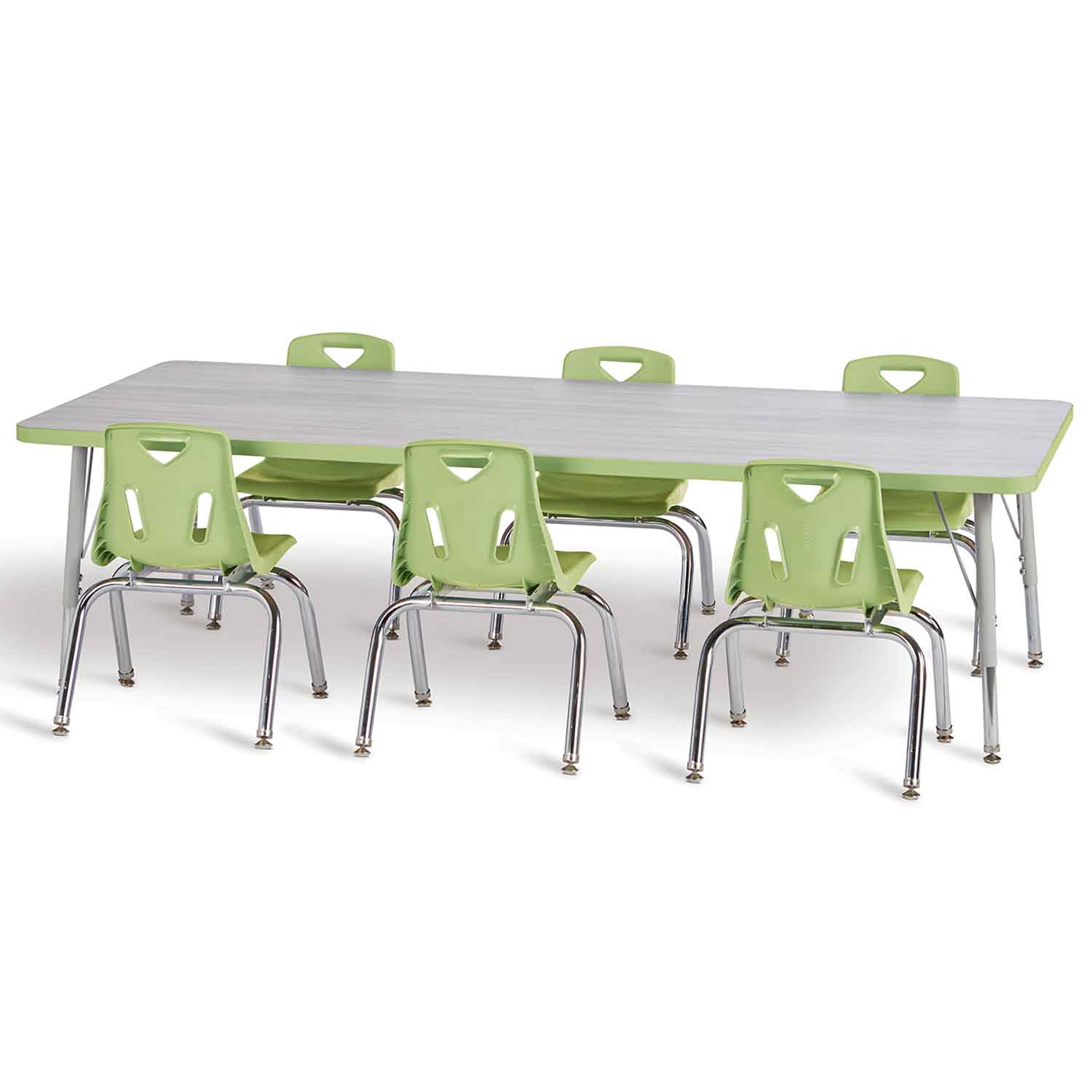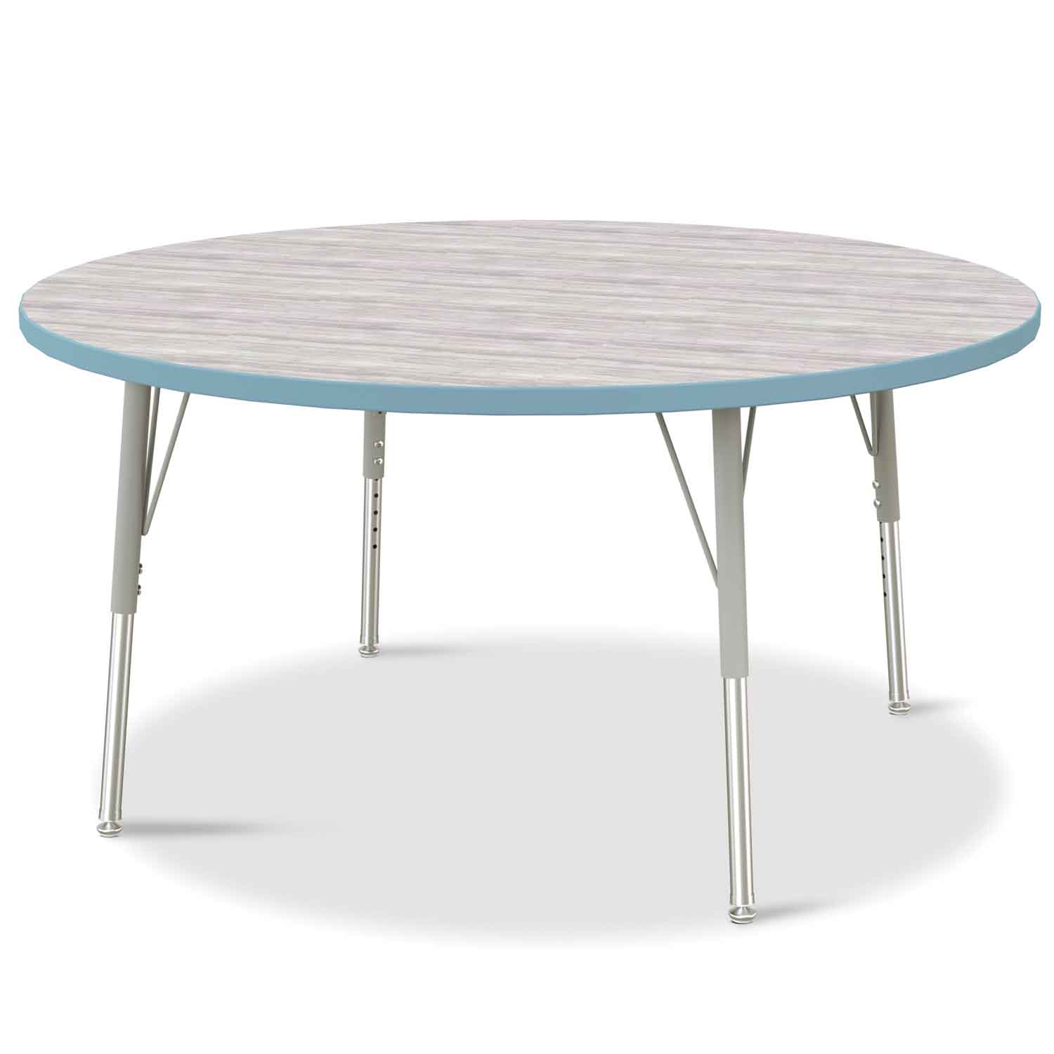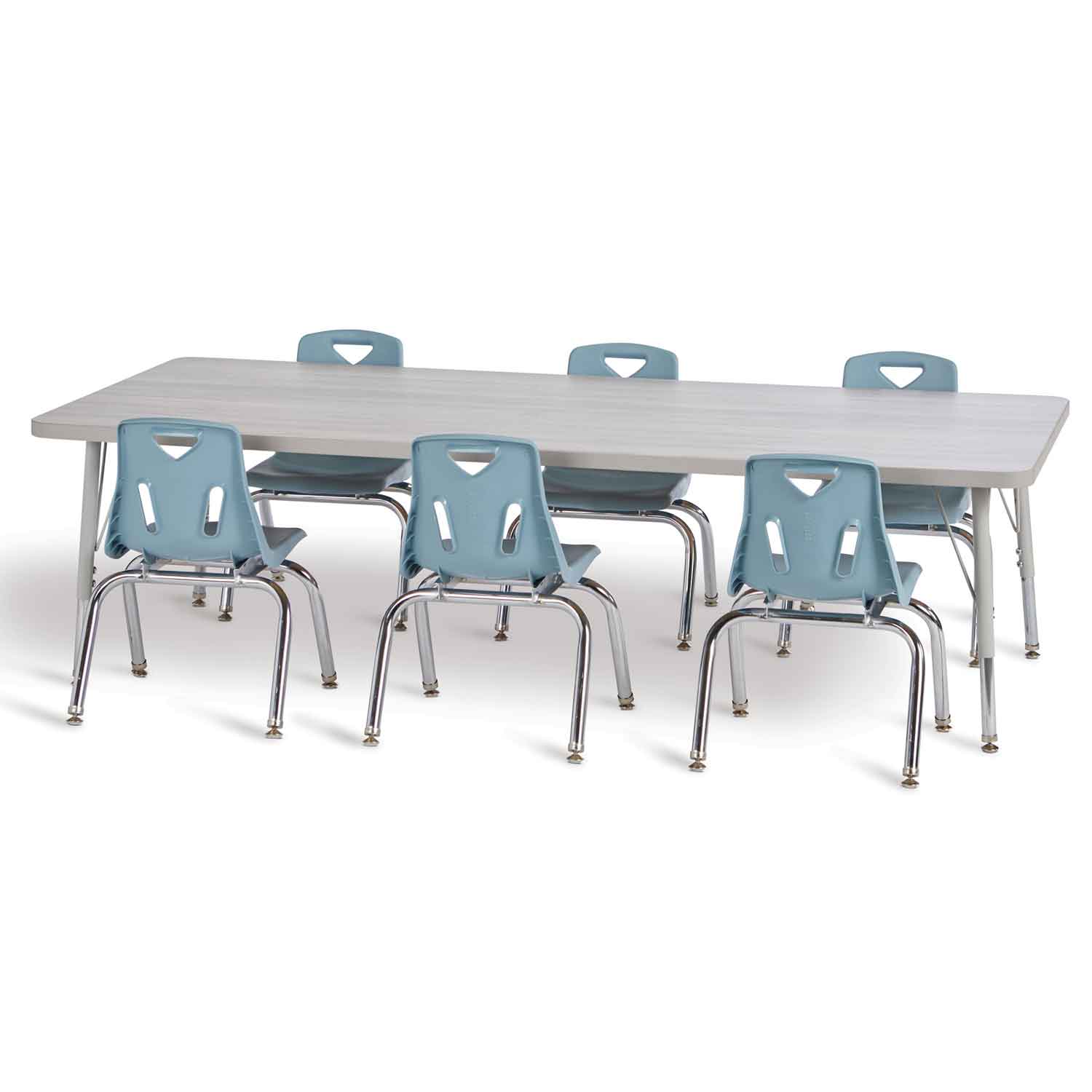 All the features you need and want plus a great new look for your classroom! The natural-looking driftwood gray surface and thermo-fused edging hold up to hard use and spills day after day–no hiding places for germs! KYDZSafe® edges, E-Z to clean, 1/8" thick laminate top, and nylon swivel glides to preventing. Everybody can be comfortable with 2 sizes available (Preschool and Adult) and each table further adjusts in one-inch increments. Minimal assembly with quick mount legs.