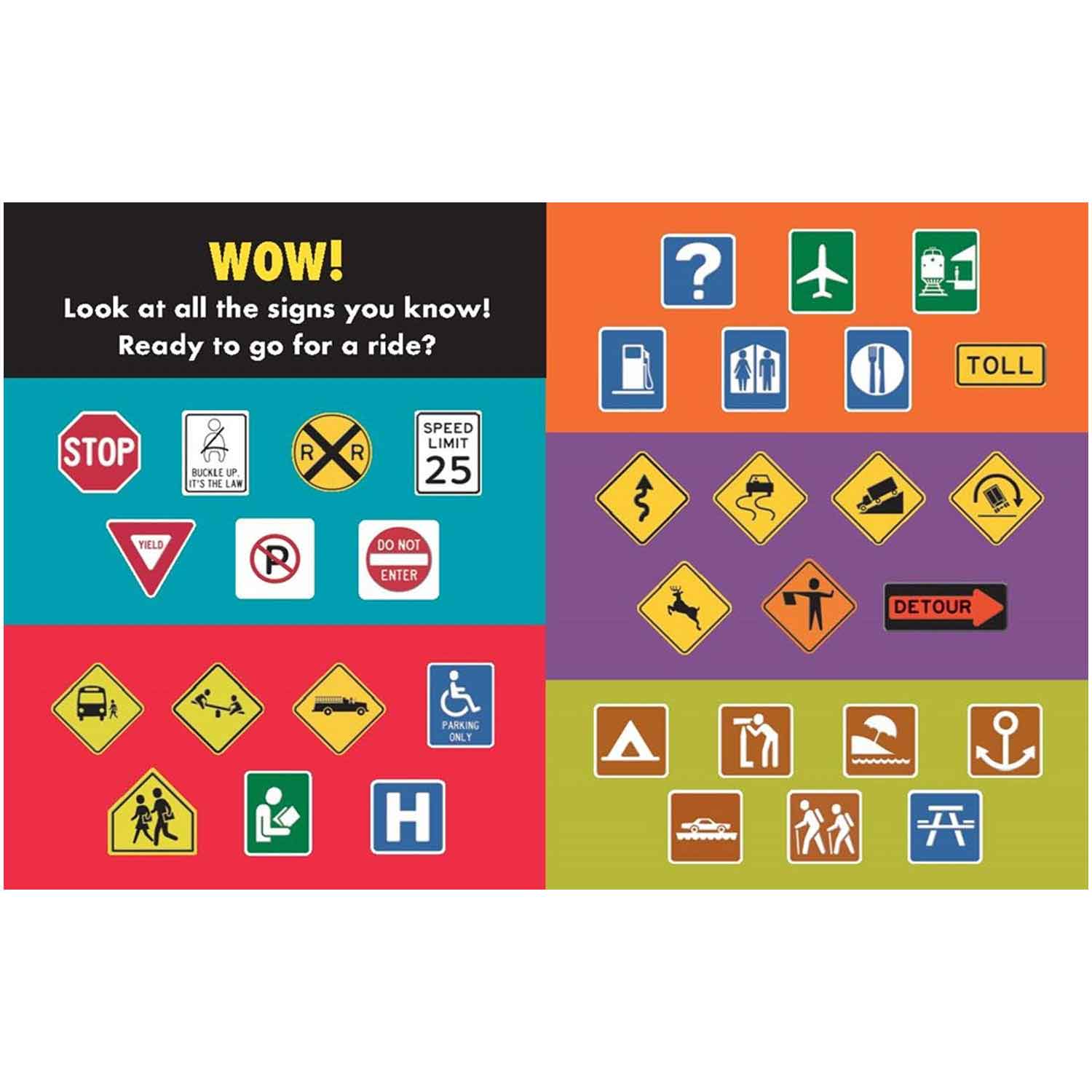 This board book highlights 35 road and highway signs for the youngest readers on the go. The shaped pages make each sign tactilely memorable and include carefully crafted one-sentence explanations to guide early readers.