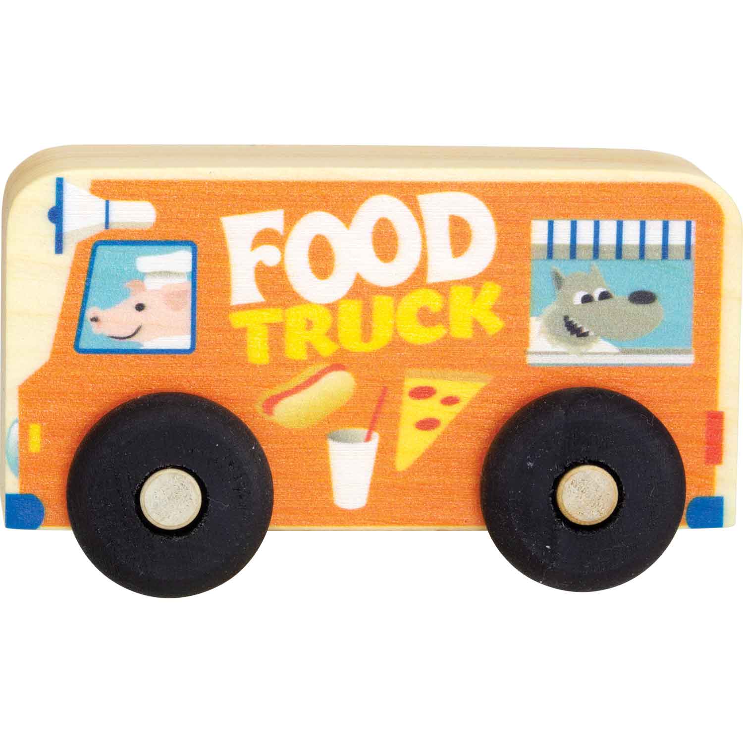 - Includes bulldozer, ice cream truck, pet waggin', tiger transit bus, trolley & food truck