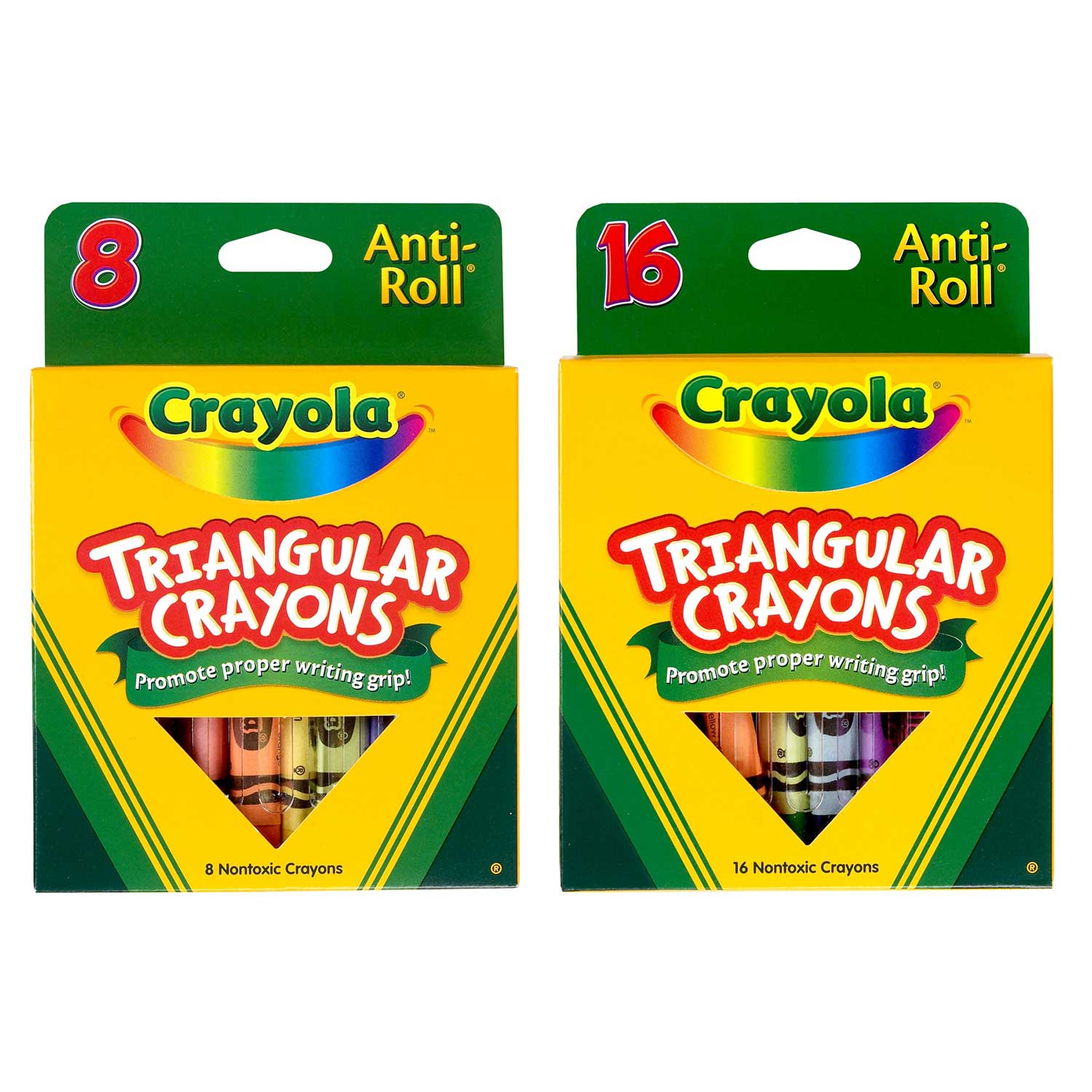 Crayola Triangular crayons combine anti-roll benefit with the shape needed to promote the proper writing grip development. These strong, non-toxic crayons are great for texture rubbings.