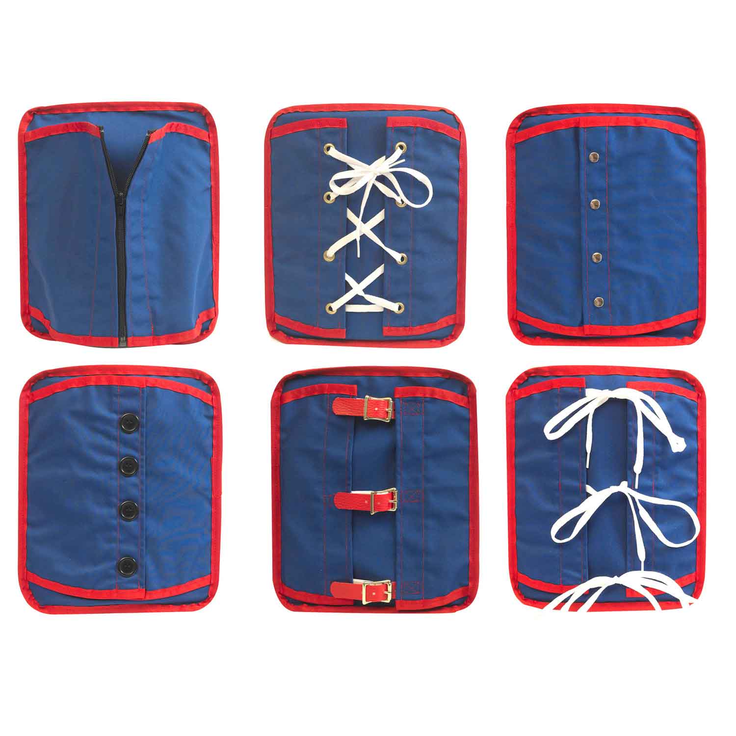 - Set of 6 includes zipper, lacing, button, snap, bow tying and buckle boards