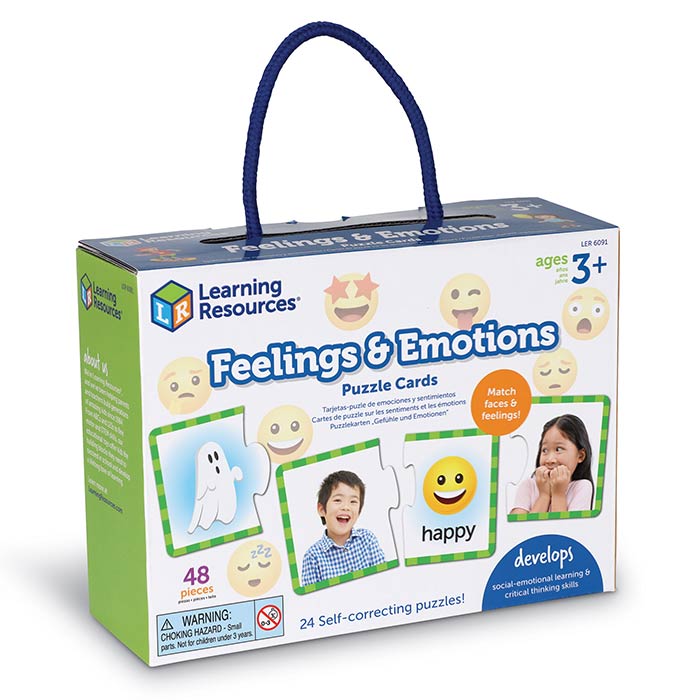 Build social-emotional learning skills one piece at a time! Set of 24 two-sided illustrated puzzles help children match emotions to images. Unique puzzle shapes ensure only one right answer. Box doubles as a reusable storage case.