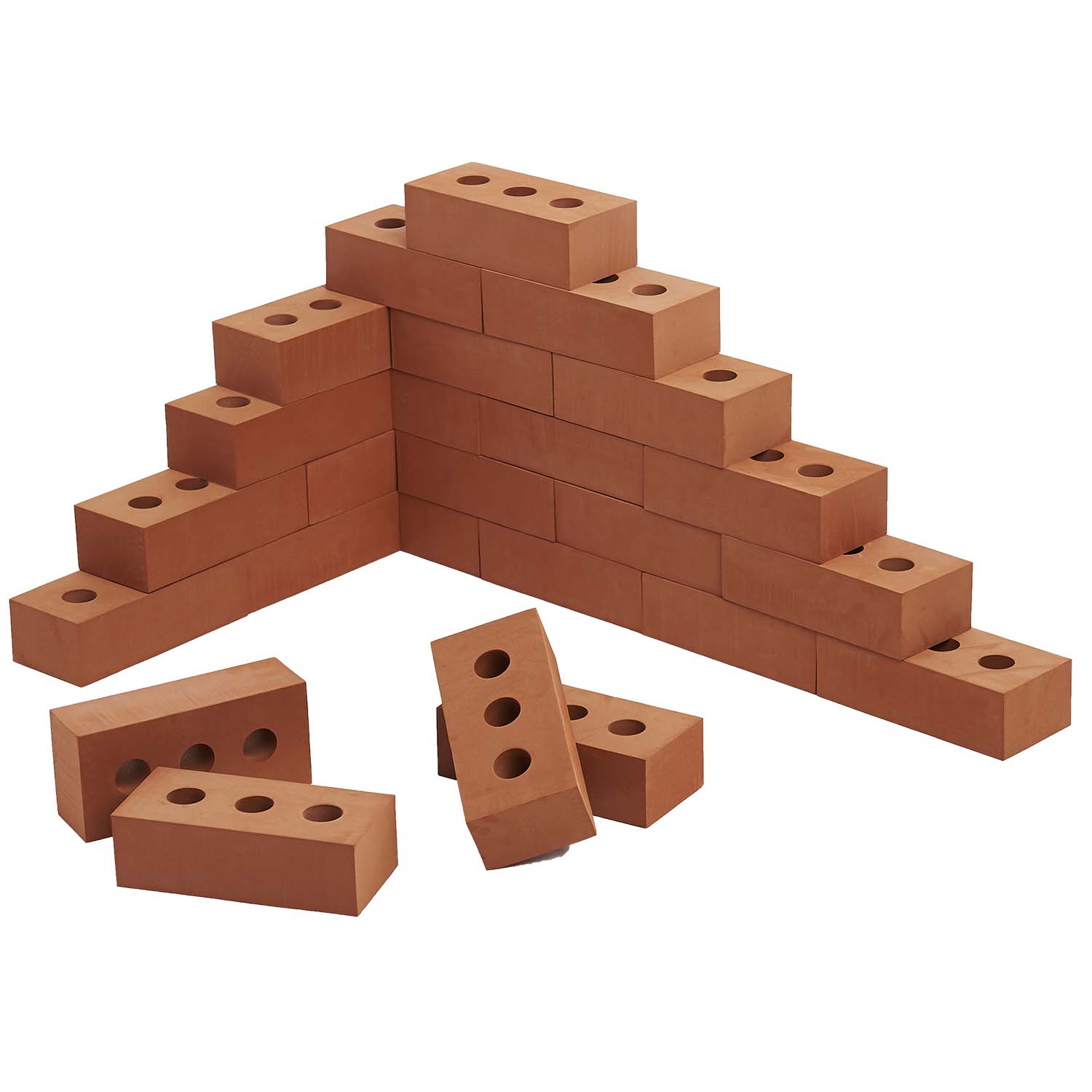 These foam construction bricks are the size and color of real ones! Holes through the blocks make them easy for small hands to handle.