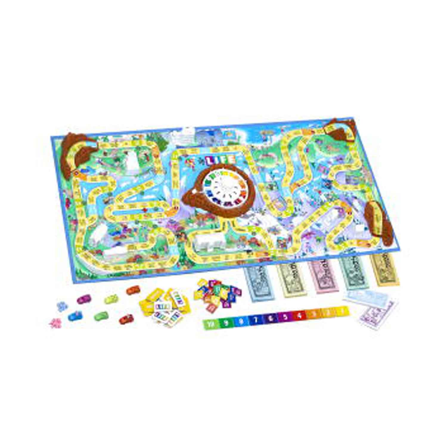 Spin the wheel of fate! A family classic for more than 30 years. Do good deeds to earn Life Tiles and more money down the road! Includes Gameboard, 6 plastic SUV pawns, Pink & Blue 'people' pegs, 3 Plastic mountains, Plastic Bridge, 6 Plastic Buildings, Label Sheet, Spinner, Stack of play money, insurance policies and bank loans, 25 LIFE Files, Deck of 36 cards, Banker's tray, Instructions.